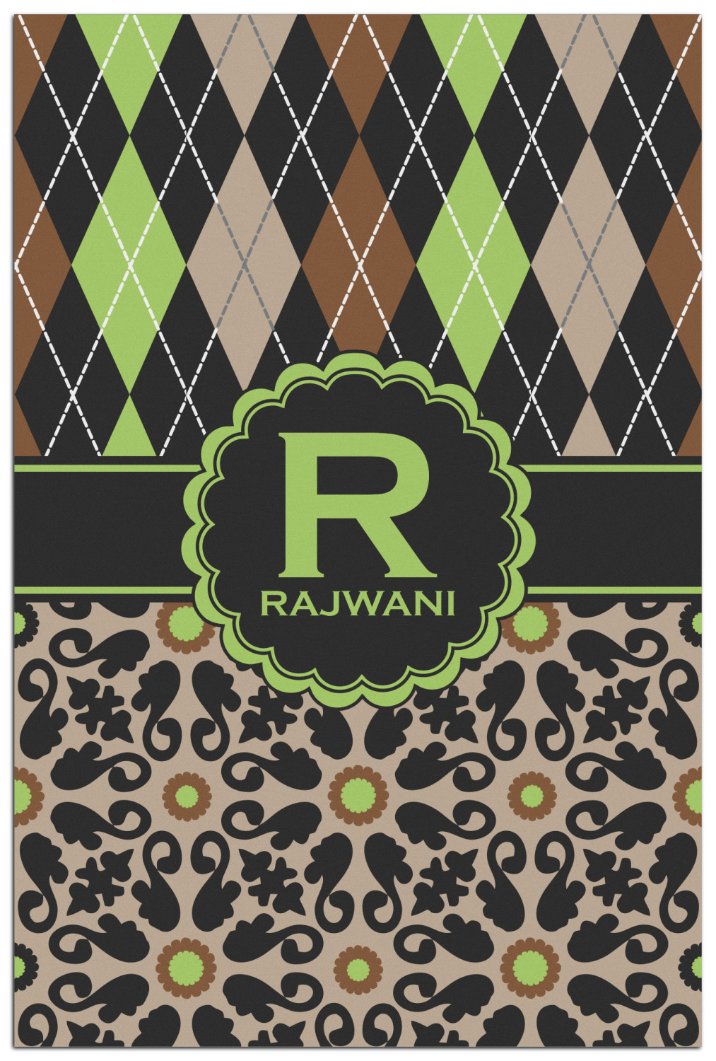 Feminine and masculine collide with this gorgeous design. The top of the design is a contrasting harlequin print in the colors of black, brown, tan, and lime green. The bottom of the design offers a fun girly flair in an abstract pattern in the same colors as the harlequin pattern set against a tan background to create a floral pattern