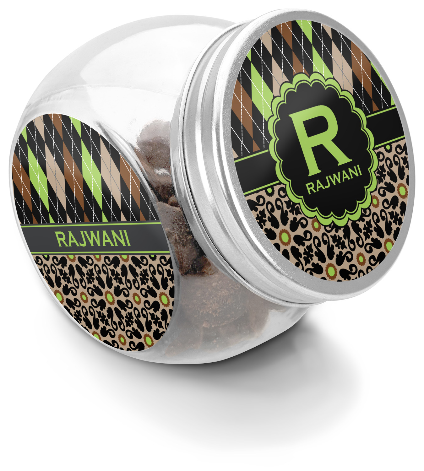 This treat jar is an excellent way to store treats for your favorite canine or feline. Moreover, their delicate, classy appearance makes them a tasteful addition to your countertop's décor. Crafted from clear glass, its unique construction and silver metal, screw-on lid allows for quick and easy access. Three, permanent, vinyl stickers are applied to both sides of the jar and lid, presenting your personalized design. The base of this glass, dog treat jar is 3.4" x 4.75", and the jar stands at 5" tall. Though on the smaller side, this jar is best suited for smaller treats or training treats.