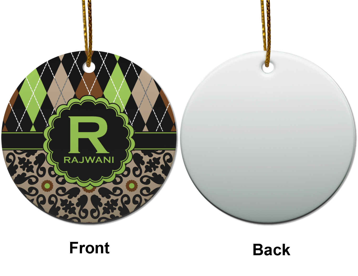 Have a happy holiday and share the joy of Christmas with your loved ones by hanging up personalized ceramic ornaments! Ornaments add a touch of who you are and the things you love onto the Christmas tree! Create custom ornaments for the kids and have them hang up their own star with their name, or pay remembrance this holiday to missed loved ones with our ceramic heart ornament. Browse many of our unique designs and customize them the way you'd like! From monograms, logos, and patterns, we have it all! You can even upload a photo of your family for us to print onto the ornament! The possibilities are endless!