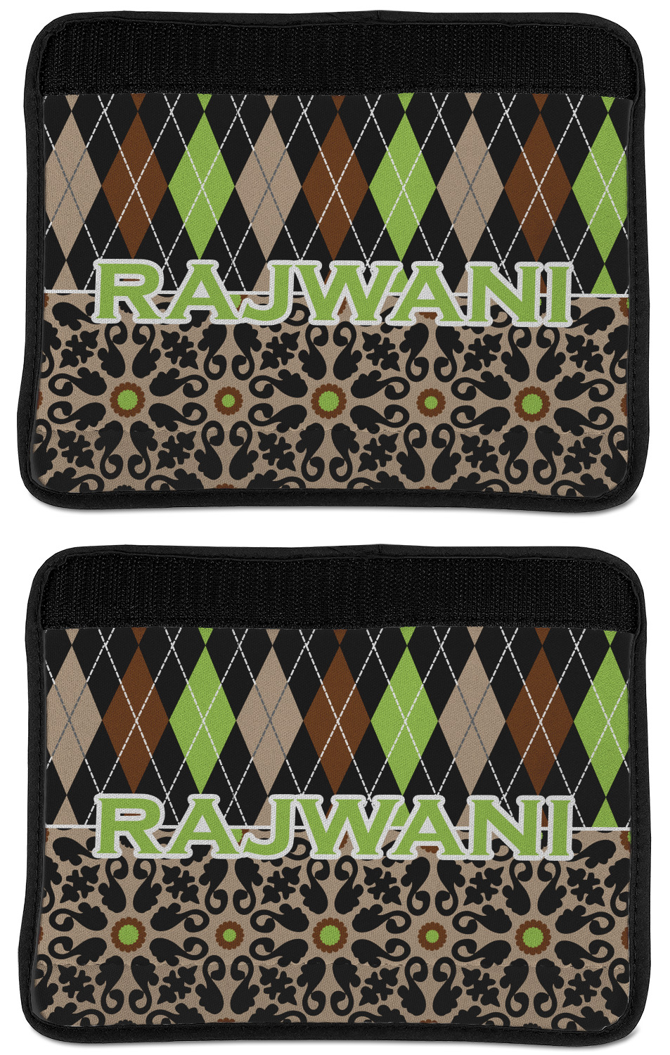 Made from neoprene, our seat belt strap covers wrap around the belt itself and have a Velcro tab for easy attachment and closure. The belt's edges are trimmed with a black polyester for a secure finish. Each cover is 9.5 by 7 inches when open and 9.5 by 2.5 inches when closed. We print your personalized design on the face of the seat belt pad.