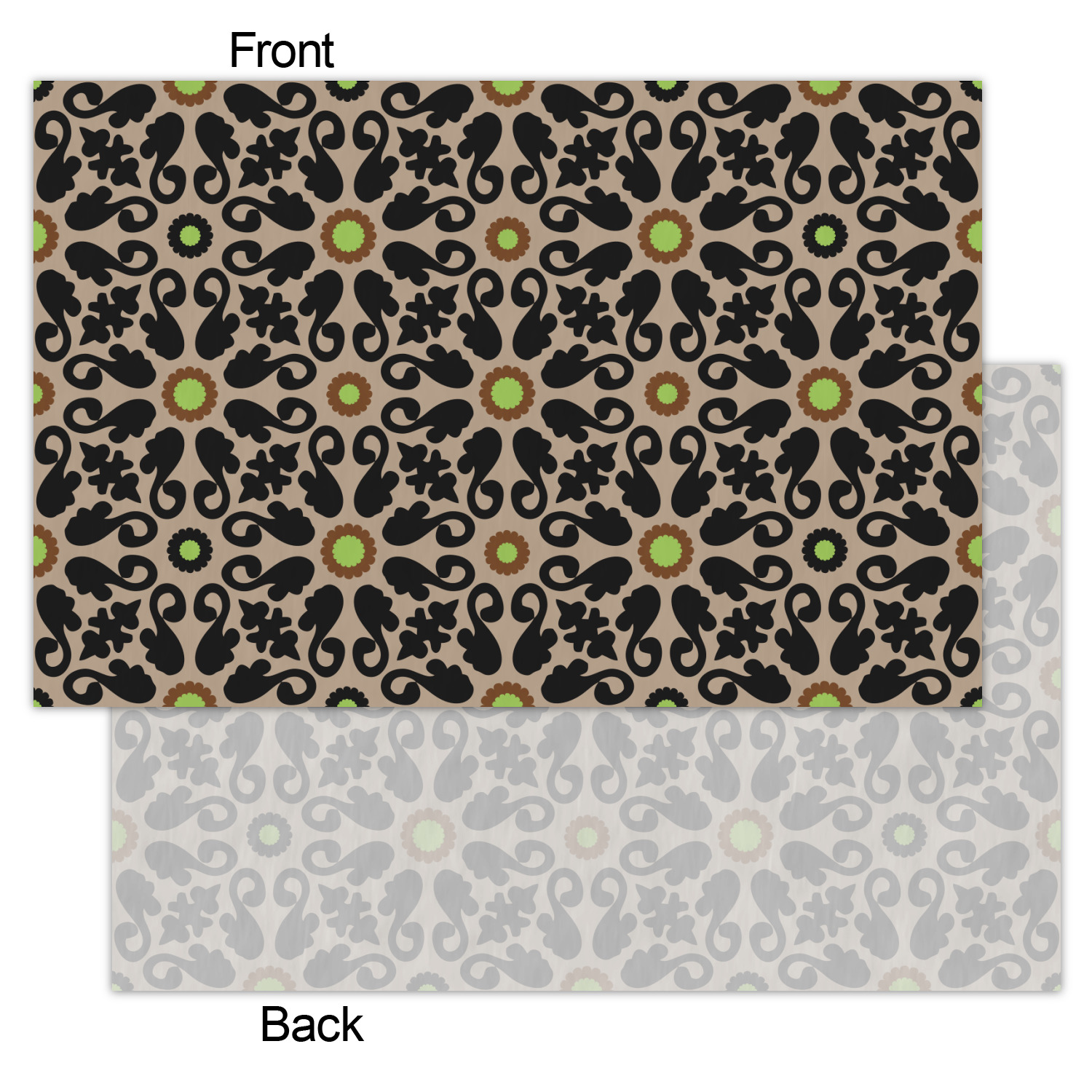 Feminine and masculine collide with this gorgeous design. The top of the design is a contrasting harlequin print in the colors of black, brown, tan, and lime green. The bottom of the design offers a fun girly flair in an abstract pattern in the same colors as the harlequin pattern set against a tan background to create a floral pattern