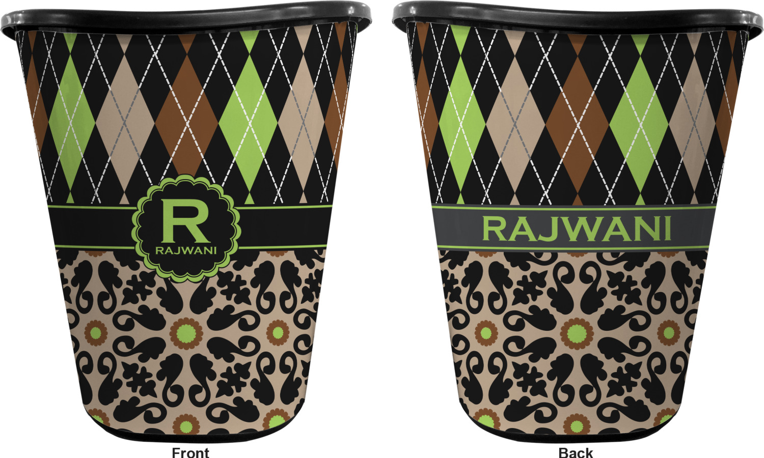 You can choose to purchase these decorative wastebaskets in either a white or a black color that will show on the base and the upper rim. Your customization is printed on a high-gloss, fine-quality vinyl adhesive, and you can choose to either have this adhesive applied to one side only or to both sides. As such, this plastic wastebasket can be single-sided or double-sided, depending on your creative vision. Your customization is printed using durable inks, making the design waterproof and resistant to fading over time.