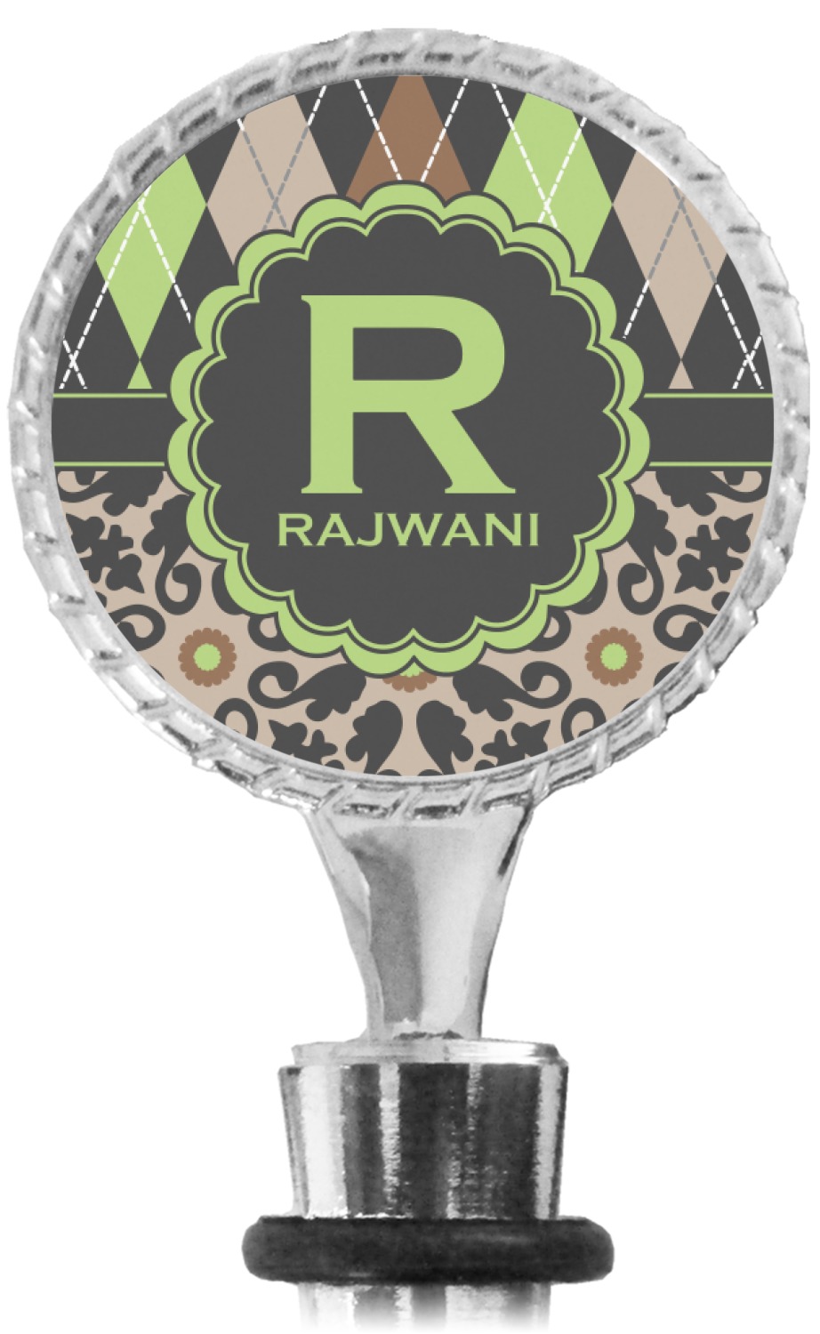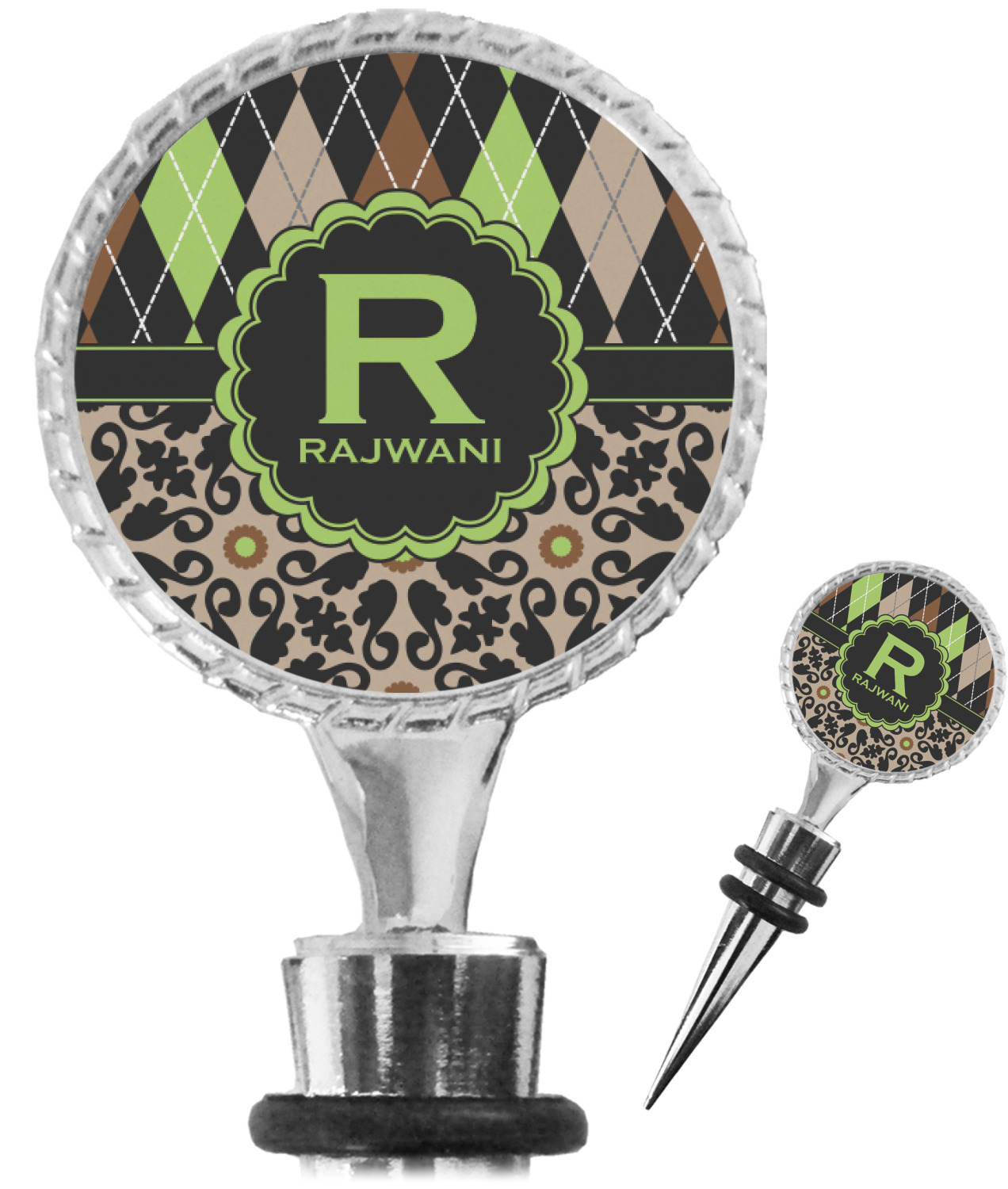 The top part of your bottle stopper is comprised of a zinc ring that displays your customization(s) in its middle, on both sides. The ring is heavy duty, with a bright chrome finish. The body of the wine stoppers have two silicone rings to provide an airtight seal. These wine bottle stoppers measure at 1.625" L x 0.8125" W x 4.625" H; your custom wine stopper is meant to fit into most standard-sized wine bottles.