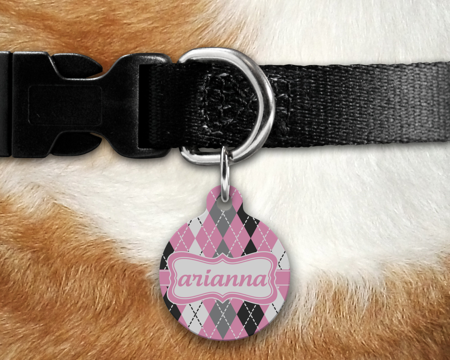 Go ahead; skip the monotony of plain pet ID tags with your very own, customized & personalized, round pet tag! This pet ID tag, fitting for both cats and dogs, will catch the eye of any onlooker (humans, canines, and felines, alike!) and accentuate your pet's individual personality.