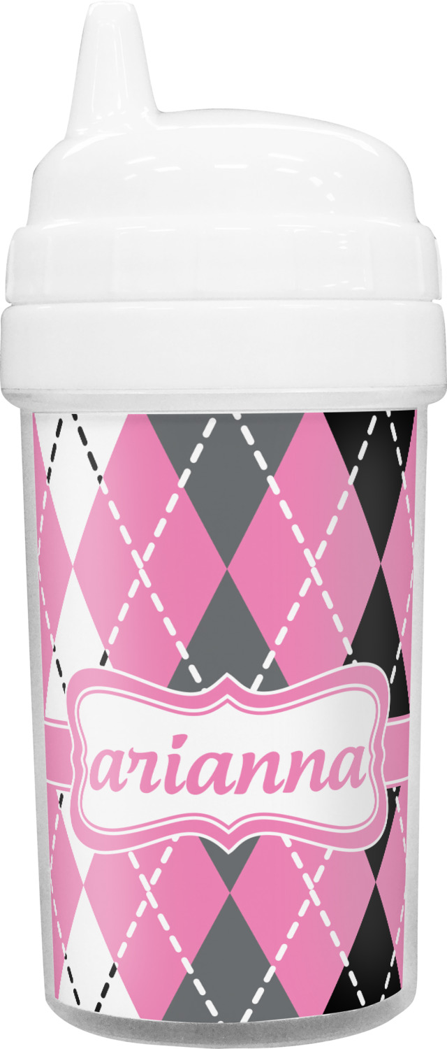 Our toddler cups are free of BPA, and have a twist-open lid so that you can easily fill and clean these cups for your young ones. Each cup also comes with a sippy nozzle to reduce spills. We offer these custom sippy cups in two different sizes; we have a baby sippy cup that holds 5 ounces, and a toddler sippy cup that holds 10 ounces. Your customization is printed on a premium glossy media insert that is placed within these toddler drinking cups.