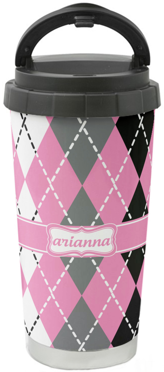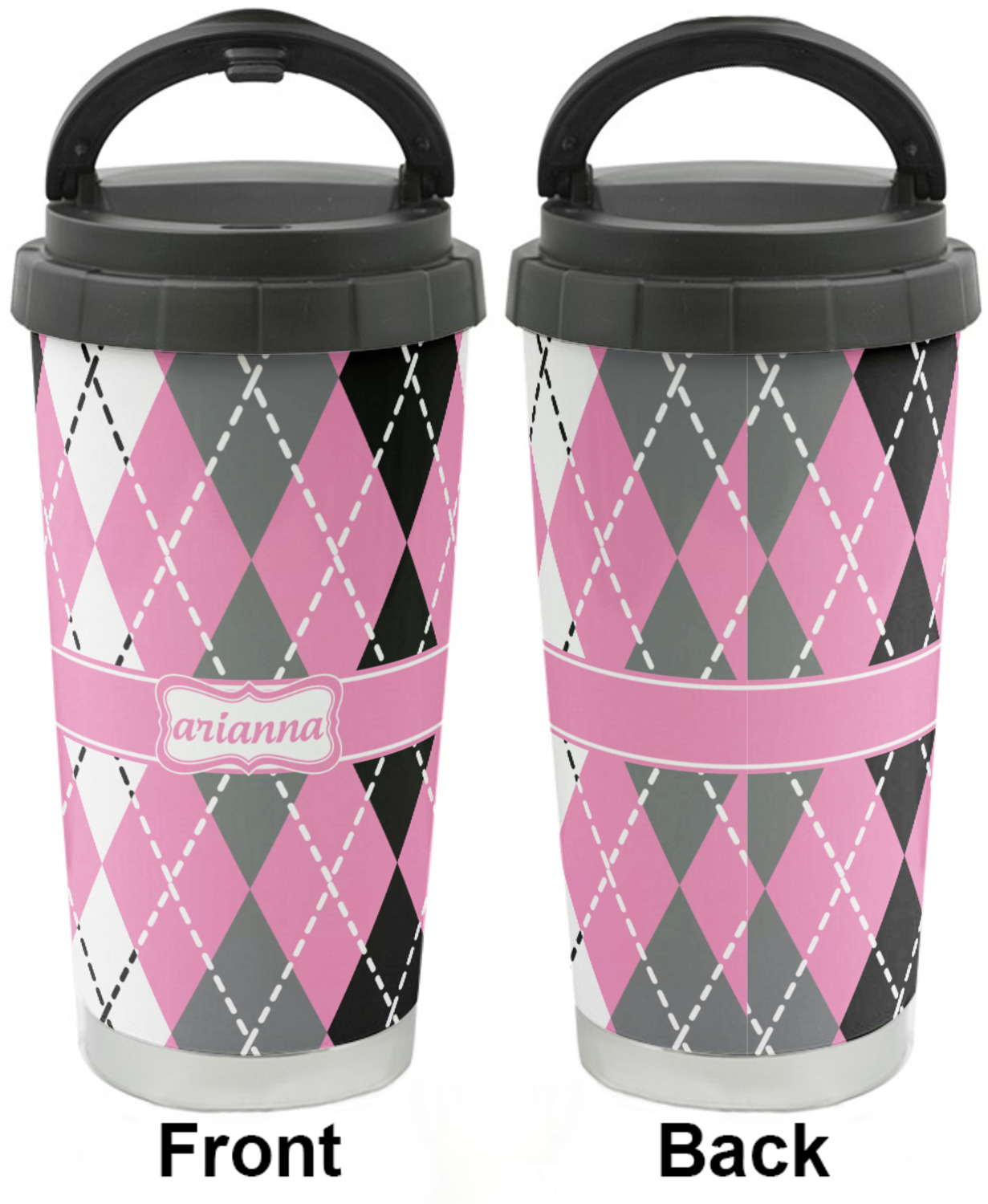 This sleek and tapered 16 oz stainless steel travel cup is a perfect fit in the hand. With the strip of visible stainless steel on the bottom, you'll be feeling classy!
