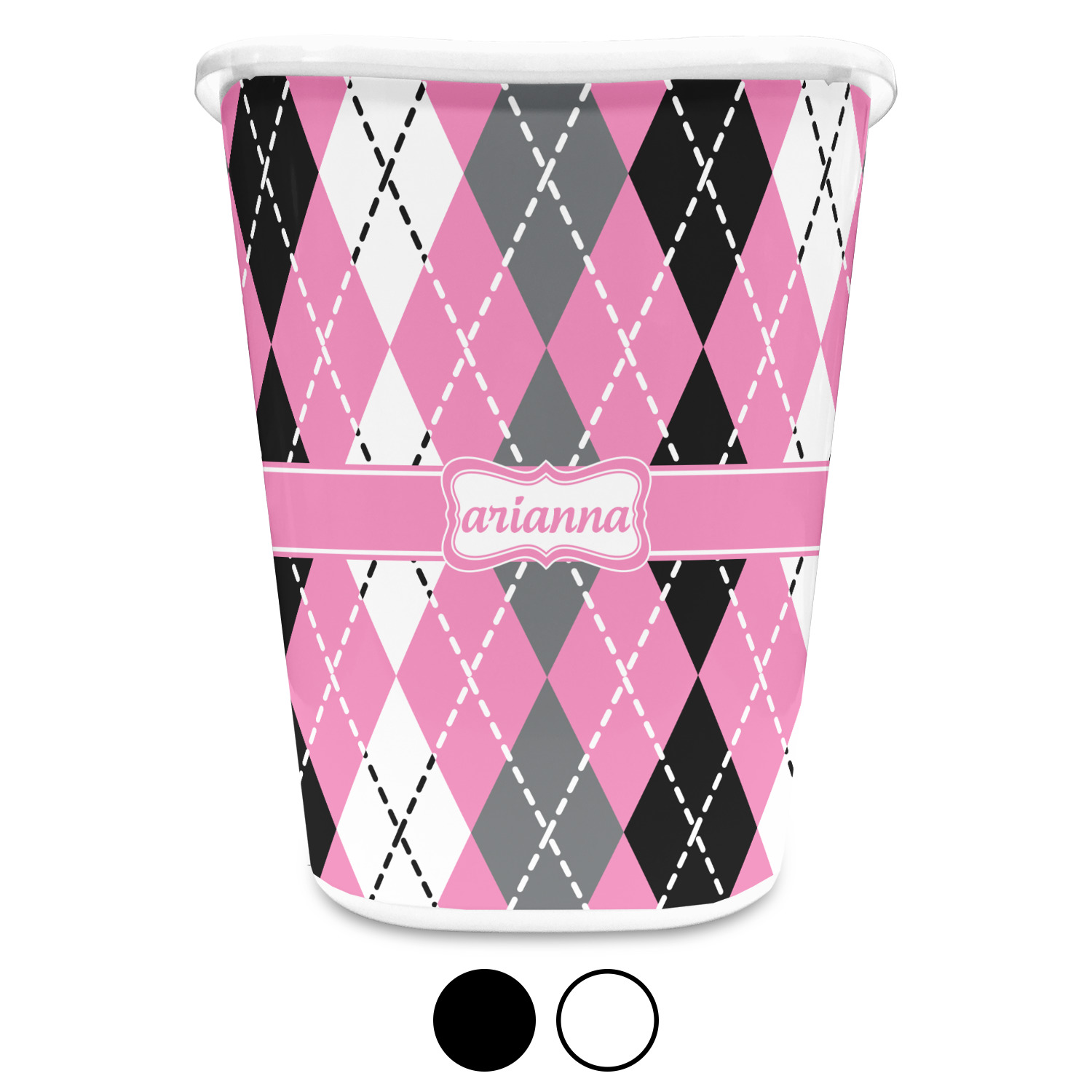 You can choose to purchase these decorative wastebaskets in either a white or a black color that will show on the base and the upper rim. Your customization is printed on a high-gloss, fine-quality vinyl adhesive, and you can choose to either have this adhesive applied to one side only or to both sides. As such, this plastic wastebasket can be single-sided or double-sided, depending on your creative vision. Your customization is printed using durable inks, making the design waterproof and resistant to fading over time.