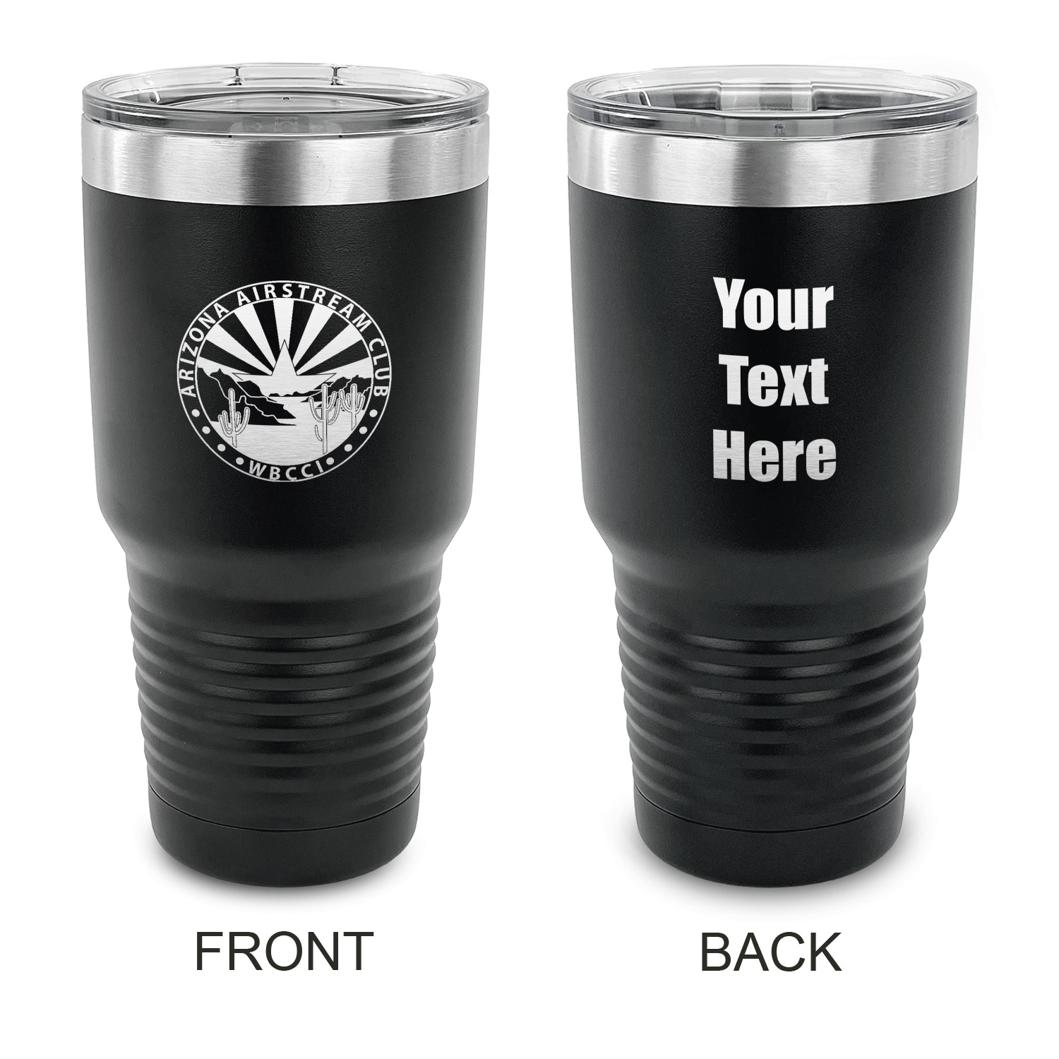 With the 5 colors - Black, Navy, Red, Pink and Coral, you are sure to find a cup to fit your personality. You can chose to engrave on the front or the front and back of the cup. Use our design studio to design your own cup and we laser engrave it for you.