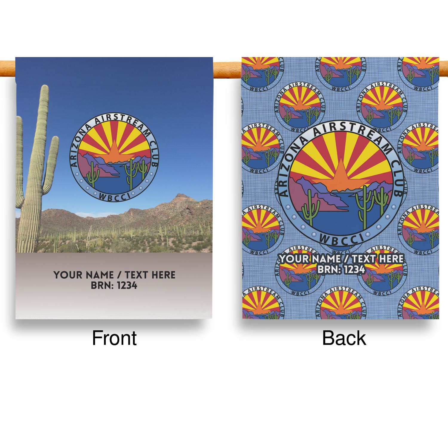 These custom garden flags are made of a durable, double-ply, polyester weave, allowing them to withstand the elements year round. The small flags measure at approximately 12 by 18 inches. The large flags measure out to 28 by 37 inches. You can order these decorative flags with your customization printed on the front only, or the front and back.