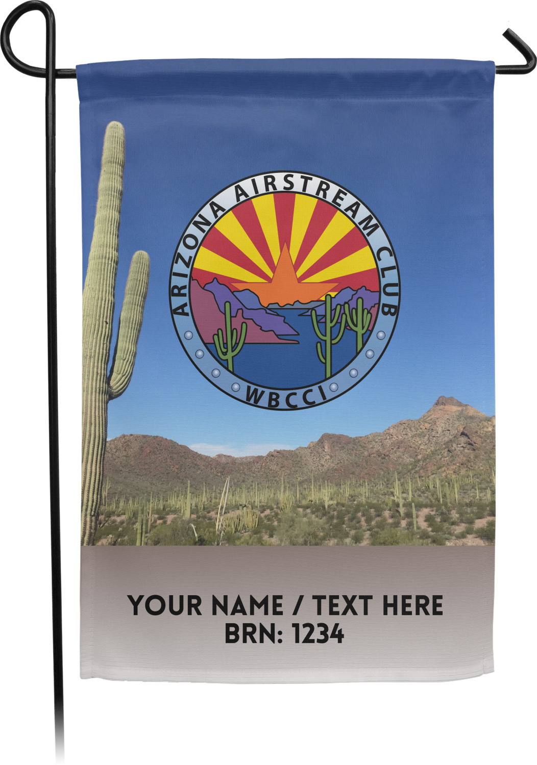 These custom garden flags are made of a durable, double-ply, polyester weave, allowing them to withstand the elements year round. The small flags measure at approximately 12 by 18 inches. The large flags measure out to 28 by 37 inches. You can order these decorative flags with your customization printed on the front only, or the front and back.