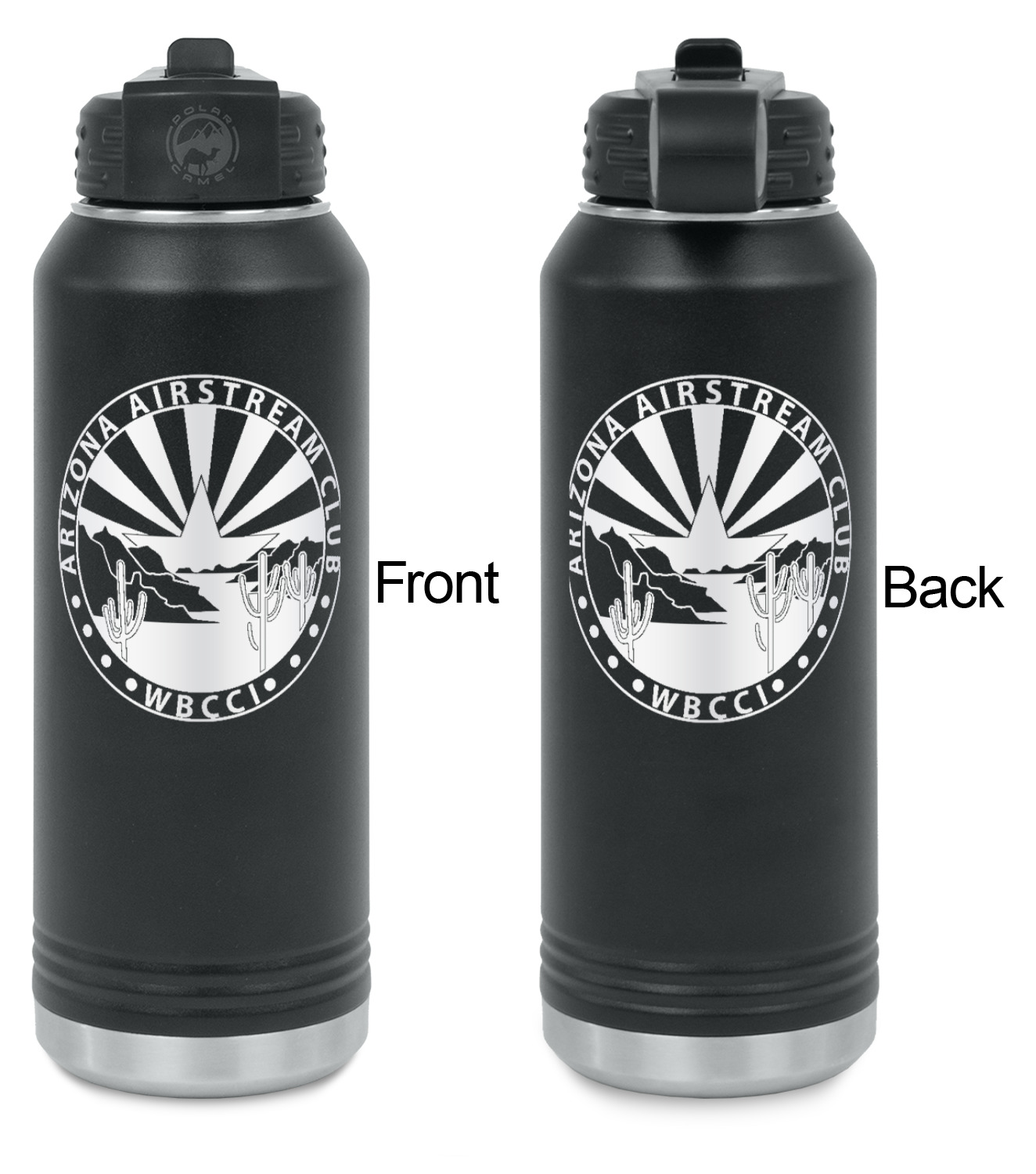 These 32 oz. water bottles are constructed from 18/8 durable food grade stainless steel. The inside of the water bottle is silver; while the outside is powder coated black
