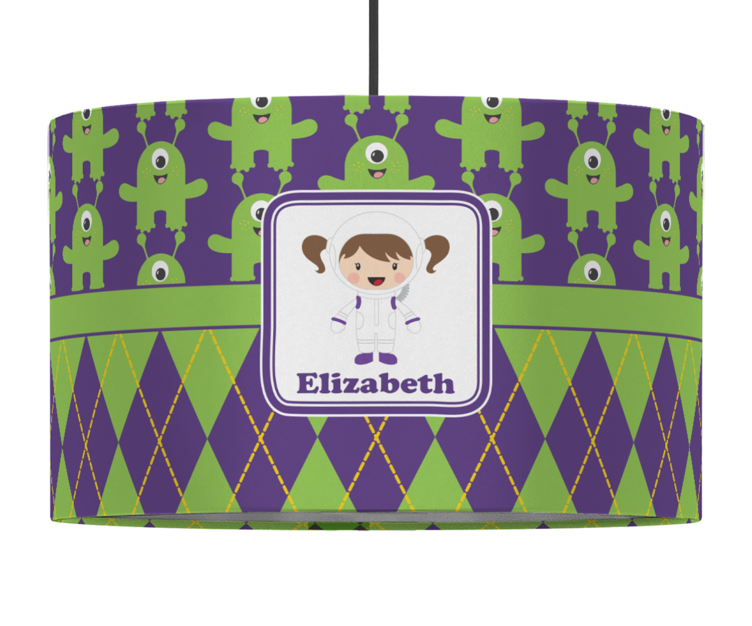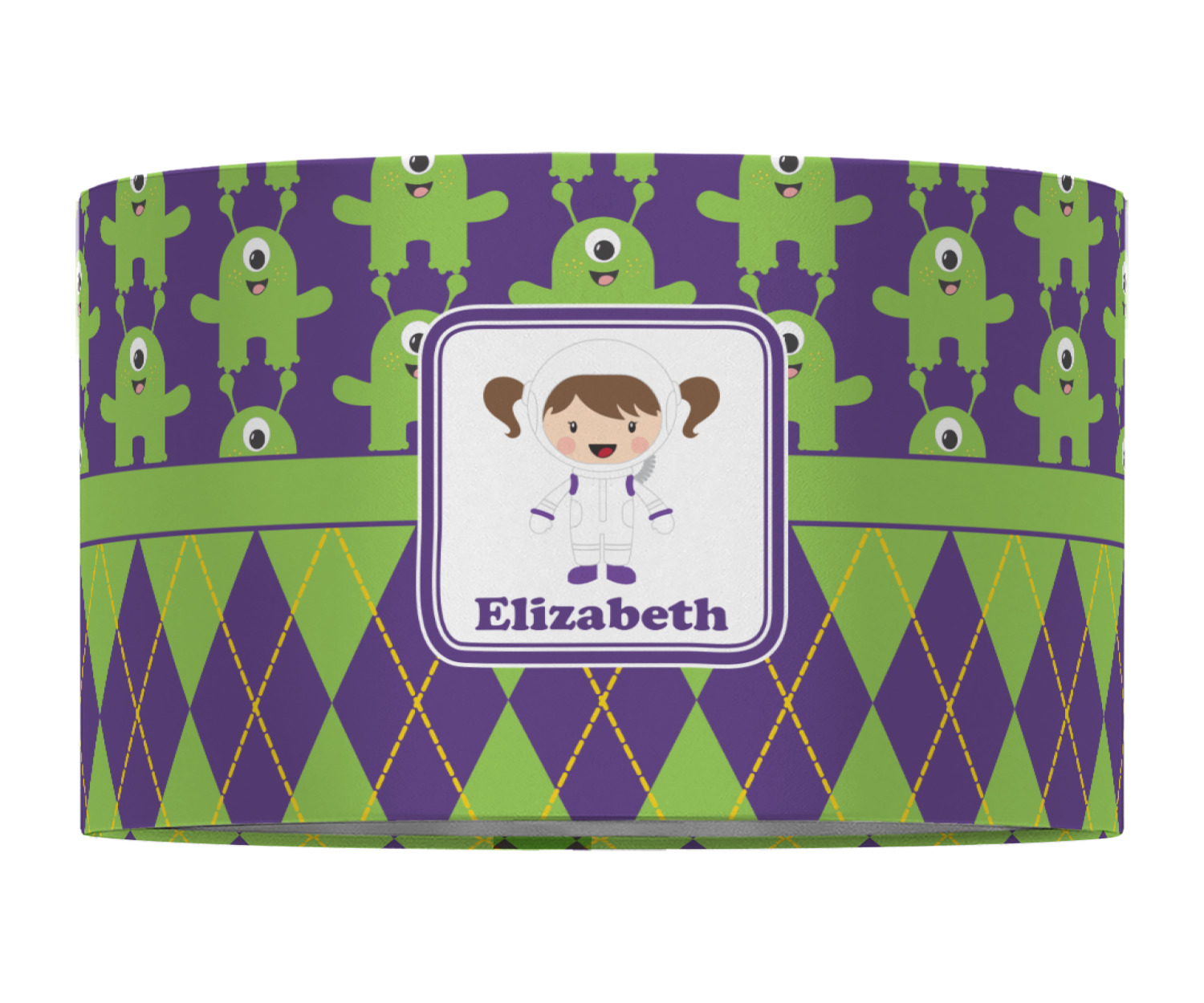 Not all martians have to be scary. These adorable green, one eyed martians will make any little girl a space fan. These little green martians come to life up against these beautiful purple background. The bottom of the design is a timeless green and purple argyle pattern with yellow accents. A green band with a purple trim brings both patterns together.