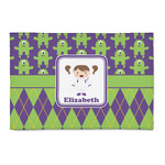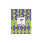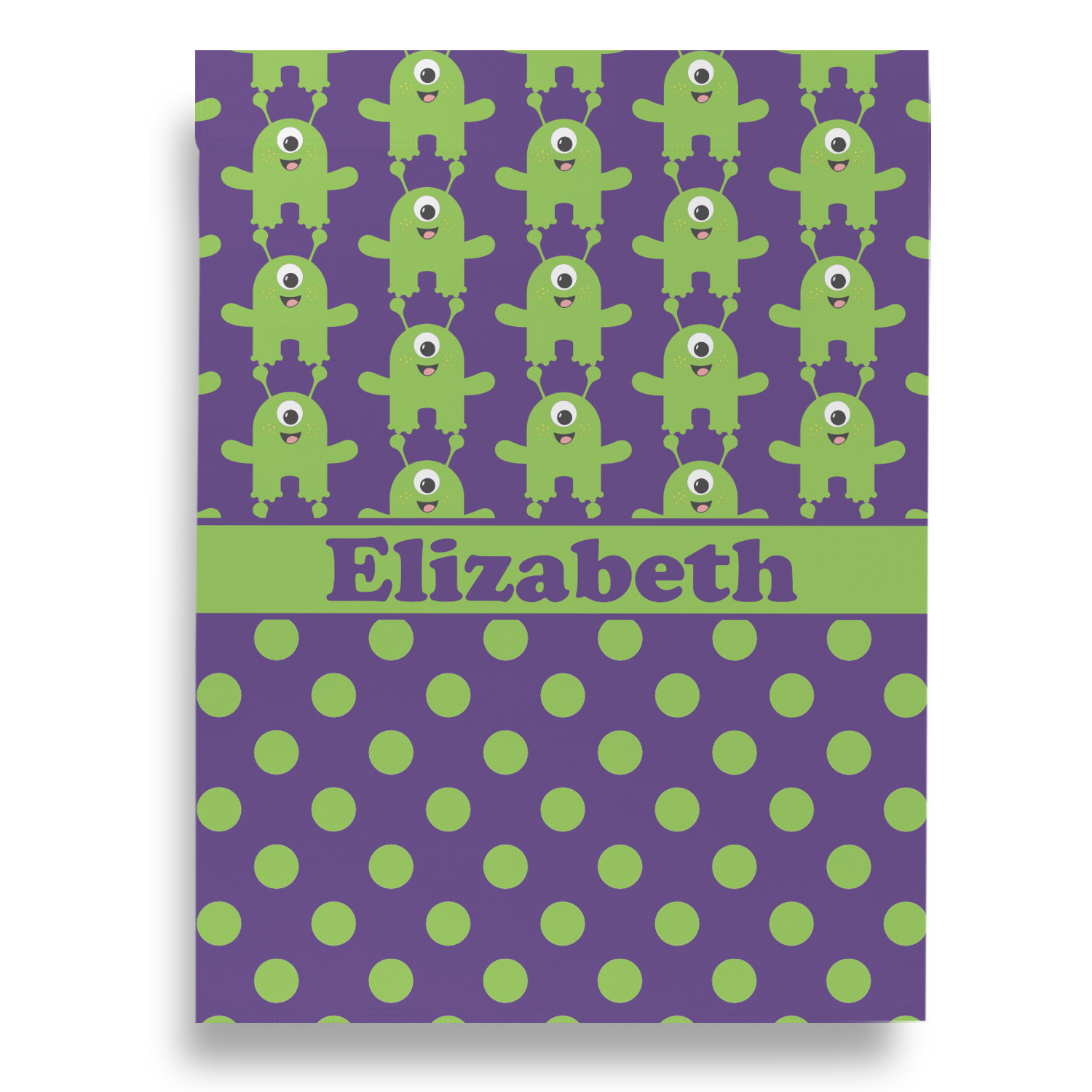 Not all martians have to be scary. These adorable green, one eyed martians will make any little girl a space fan. These little green martians come to life up against these beautiful purple background. The bottom of the design is a timeless green and purple argyle pattern with yellow accents. A green band with a purple trim brings both patterns together.