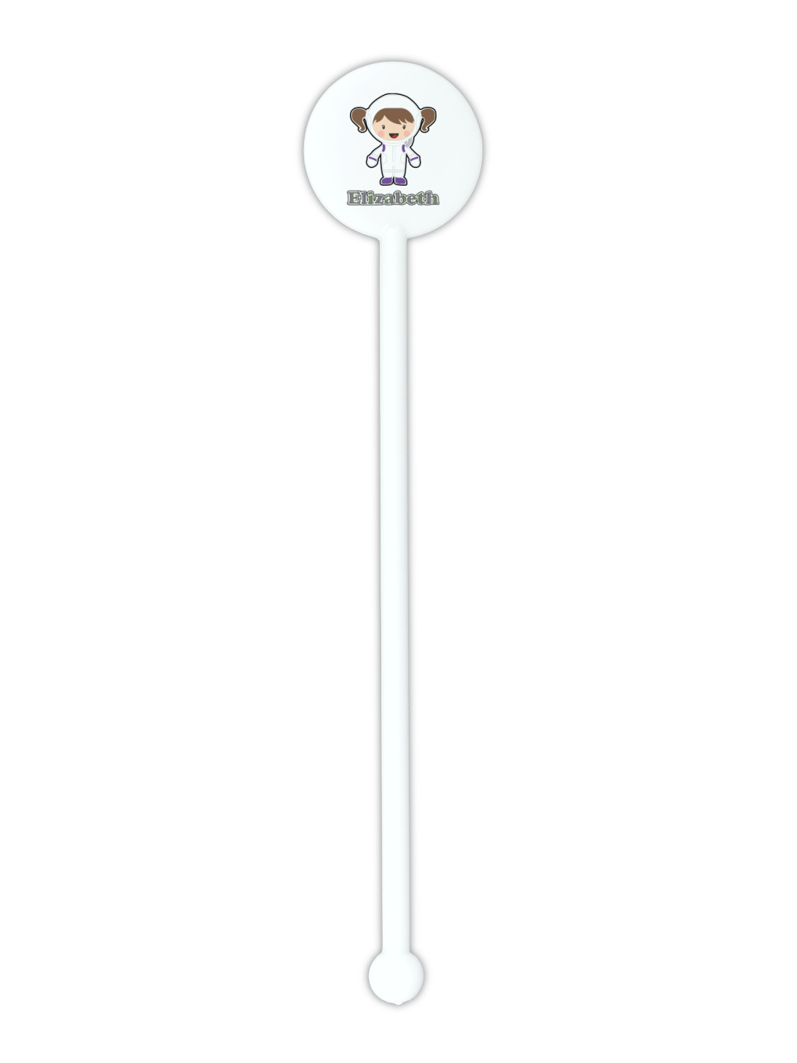 The center focal point of the design is a white square label outlined in the coordinating green and purple colors with our cute little girl in the middle. Add your little girl's name to make this design extra special.