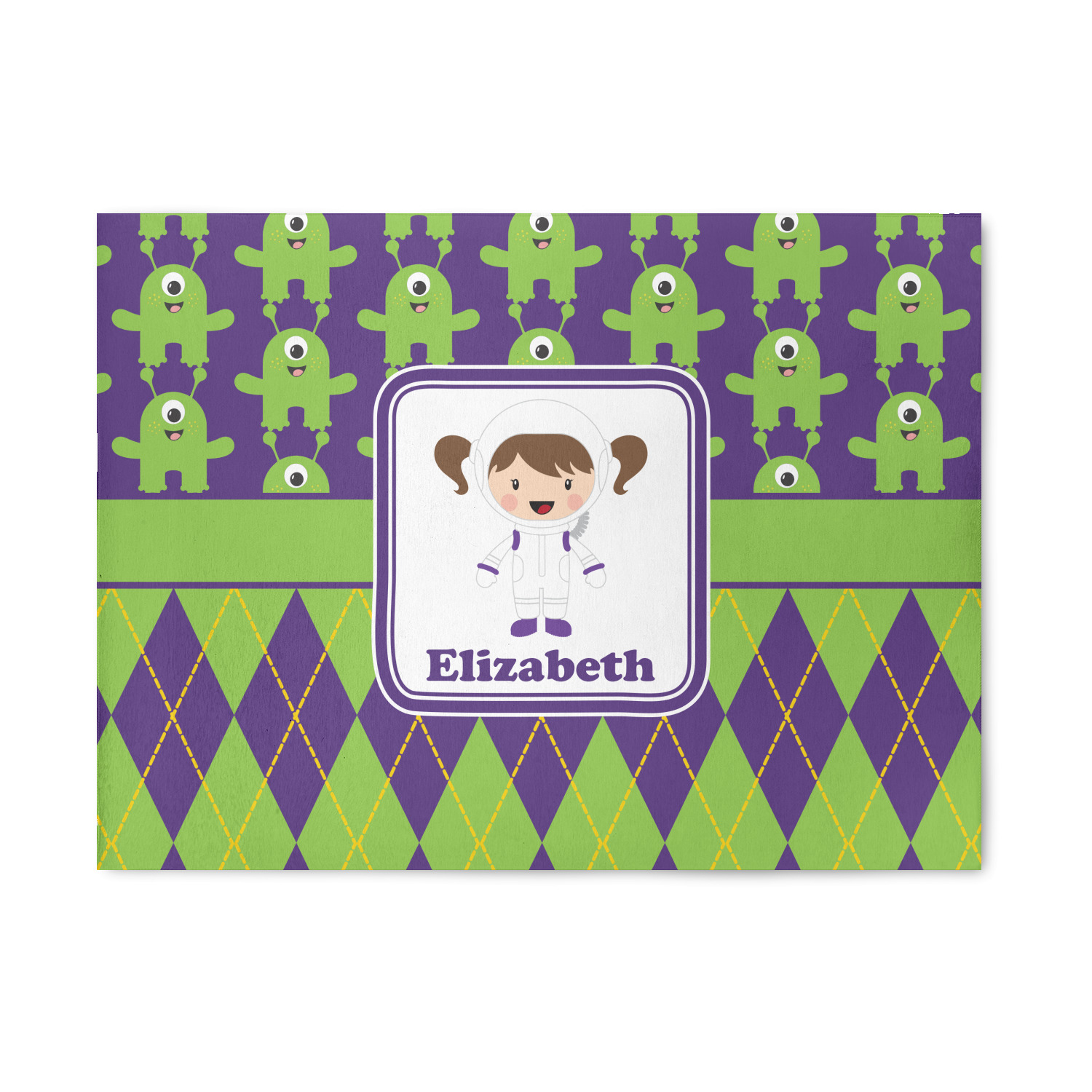 Not all martians have to be scary. These adorable green, one eyed martians will make any little girl a space fan. These little green martians come to life up against these beautiful purple background. The bottom of the design is a timeless green and purple argyle pattern with yellow accents. A green band with a purple trim brings both patterns together.