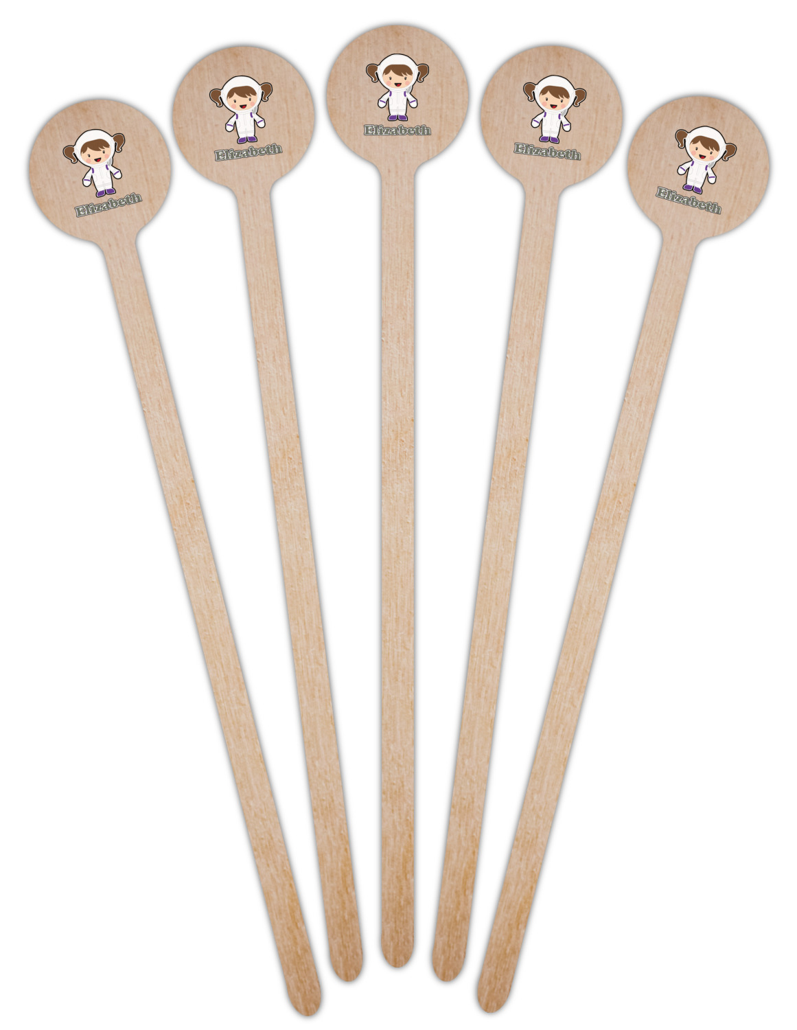 The center focal point of the design is a white square label outlined in the coordinating green and purple colors with our cute little girl in the middle. Add your little girl's name to make this design extra special.