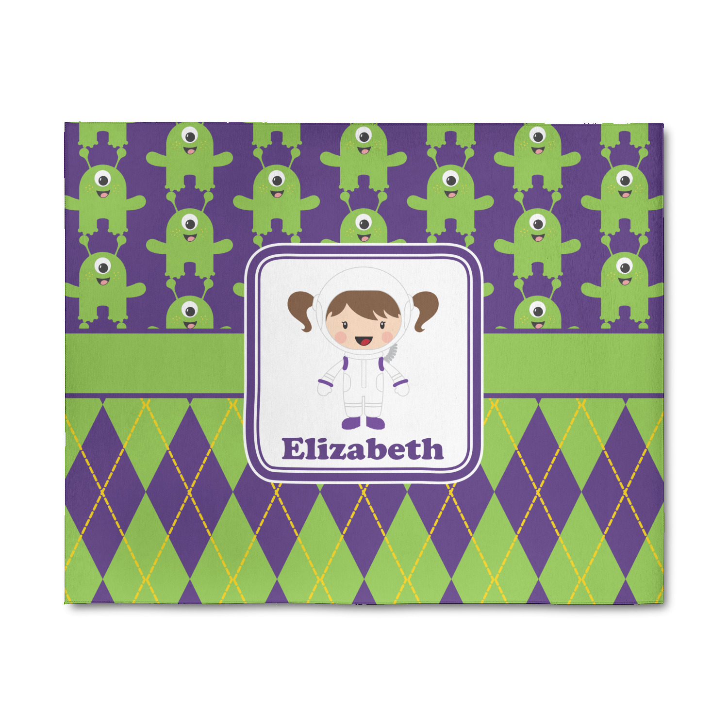 Not all martians have to be scary. These adorable green, one eyed martians will make any little girl a space fan. These little green martians come to life up against these beautiful purple background. The bottom of the design is a timeless green and purple argyle pattern with yellow accents. A green band with a purple trim brings both patterns together.