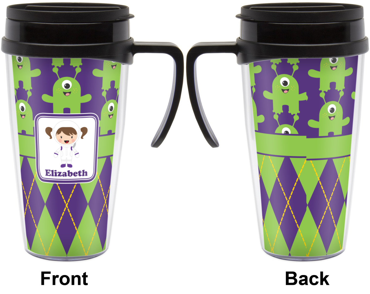 Keep your drink secure while on your daily commute with one of our personalized travel mugs! These travel mugs will add a splash of color and creativity to your kitchen counter-top, car cup holder, office desk, or wherever you choose to place them! With these custom mugs, you'll never have to settle for a boring, run-of-the-mill travel mug.