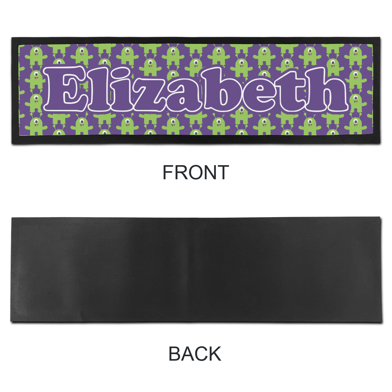 The center focal point of the design is a white square label outlined in the coordinating green and purple colors with our cute little girl in the middle. Add your little girl's name to make this design extra special.