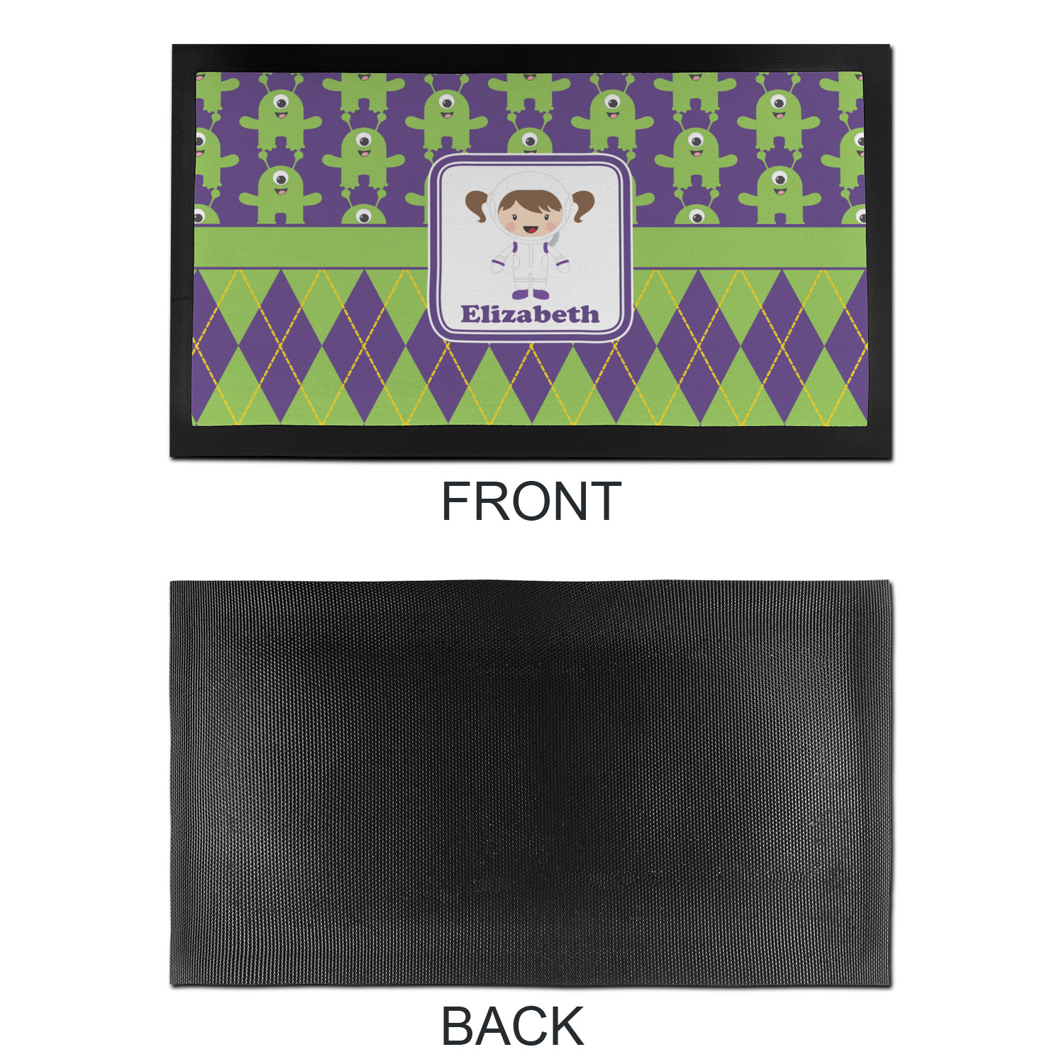 Not all martians have to be scary. These adorable green, one eyed martians will make any little girl a space fan. These little green martians come to life up against these beautiful purple background. The bottom of the design is a timeless green and purple argyle pattern with yellow accents. A green band with a purple trim brings both patterns together.