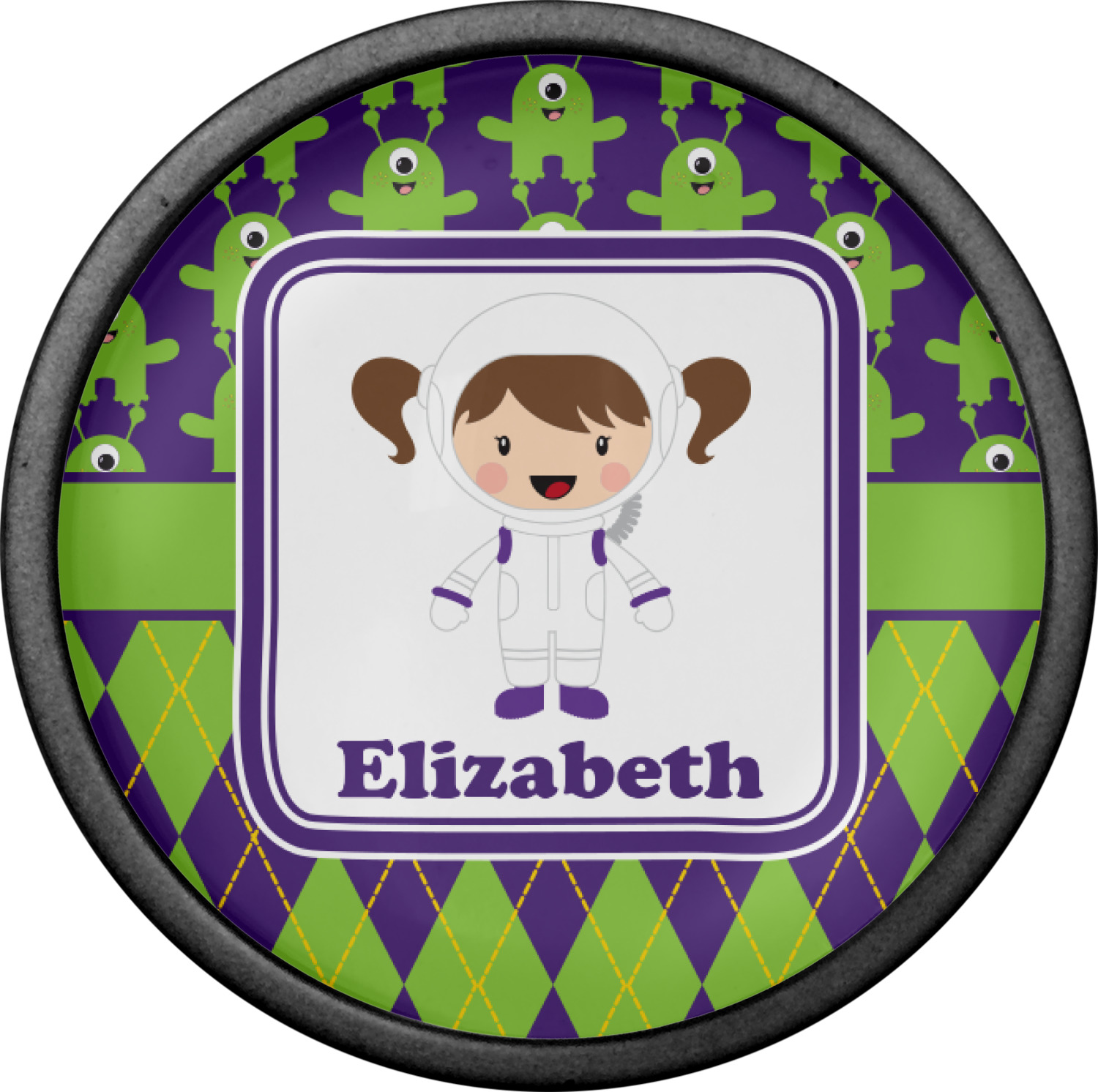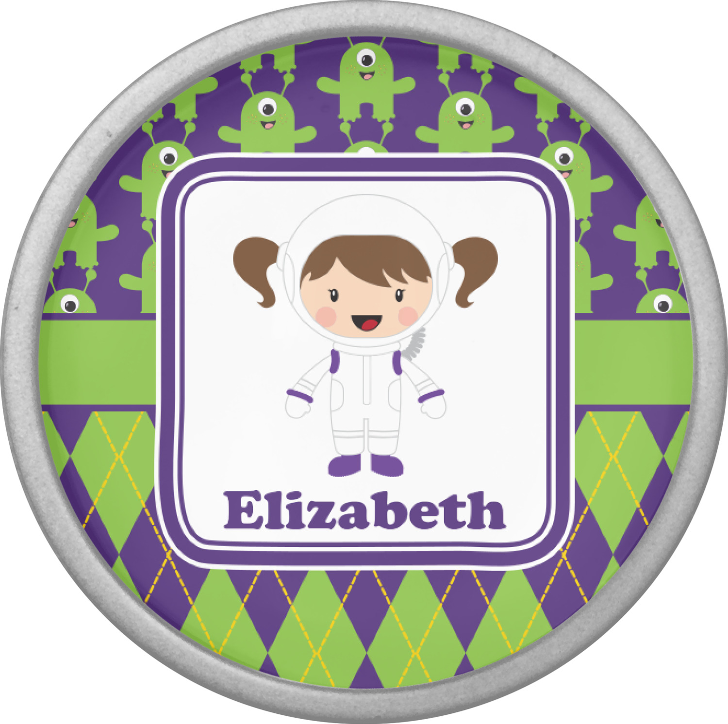 Not all martians have to be scary. These adorable green, one eyed martians will make any little girl a space fan. These little green martians come to life up against these beautiful purple background. The bottom of the design is a timeless green and purple argyle pattern with yellow accents. A green band with a purple trim brings both patterns together.
