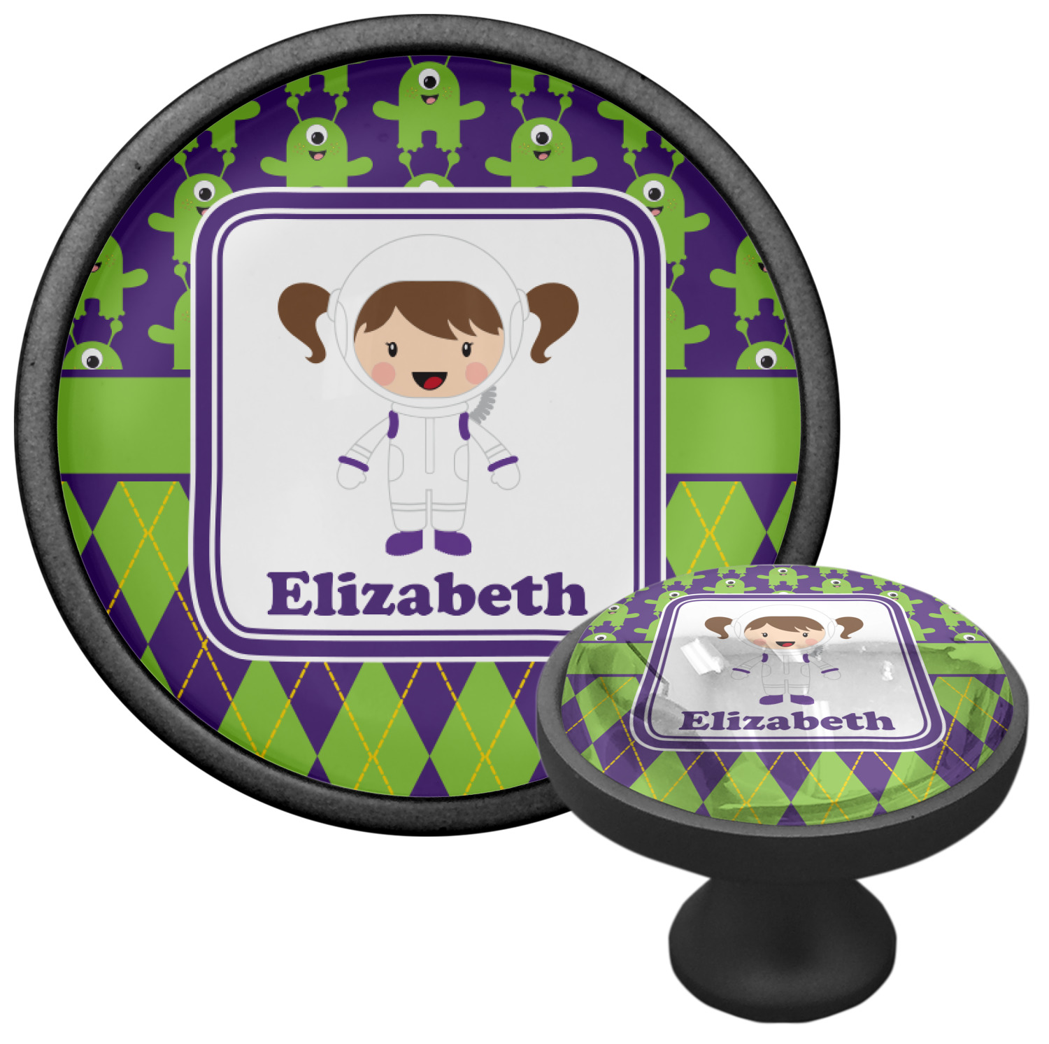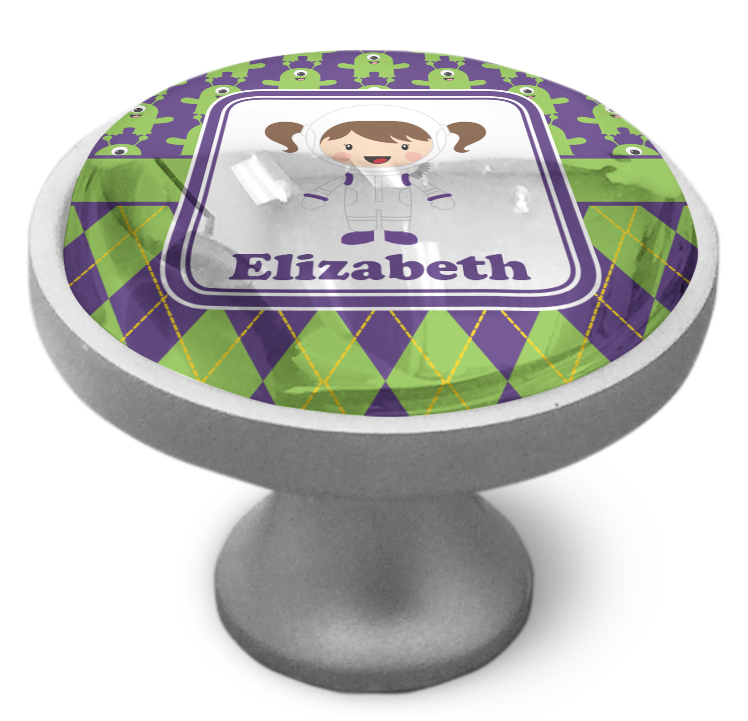 We sell these cabinet pulls in two different colors to better match your room's color scheme. We offer an oil-rubbed bronze base that is black in color, and a satin nickel option, which has a silver color. Your design is displayed across a high gloss vinyl insert that is placed on top of these cabinet handles. We then place a 1 inch thick glass cabochon atop the design, which seals the cabinet knob and makes the colors of your customization stand out. These custom cabinet knobs are approximately 1.3 inches in diameter. Your purchase includes a 1 inch screw that can be used to mount the knob to any cabinet in your home.