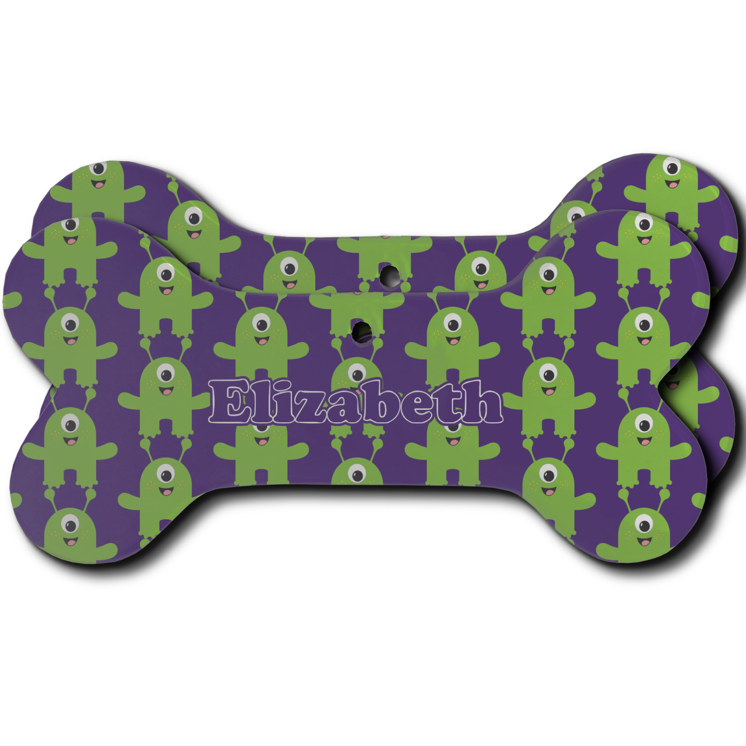 Our dog Christmas ornaments are a ceramic material with a bone-shaped structure hung horizontally. We offer two printing styles to personalize your furry friend's ornament! Choose a one-sided printing, perfect for wall decor, memorial accessory, or doghouse nameplate! Create a double-sided ornament perfect for adorning the Christmas tree. Each dog bone ornament is approximately 4.75" x 2.25" and is printed here in the USA.