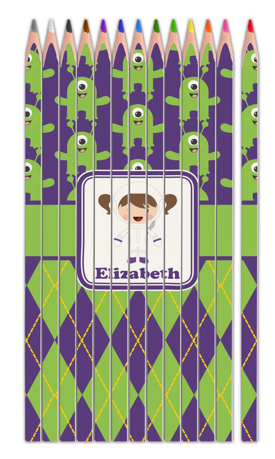Not all martians have to be scary. These adorable green, one eyed martians will make any little girl a space fan. These little green martians come to life up against these beautiful purple background. The bottom of the design is a timeless green and purple argyle pattern with yellow accents. A green band with a purple trim brings both patterns together.