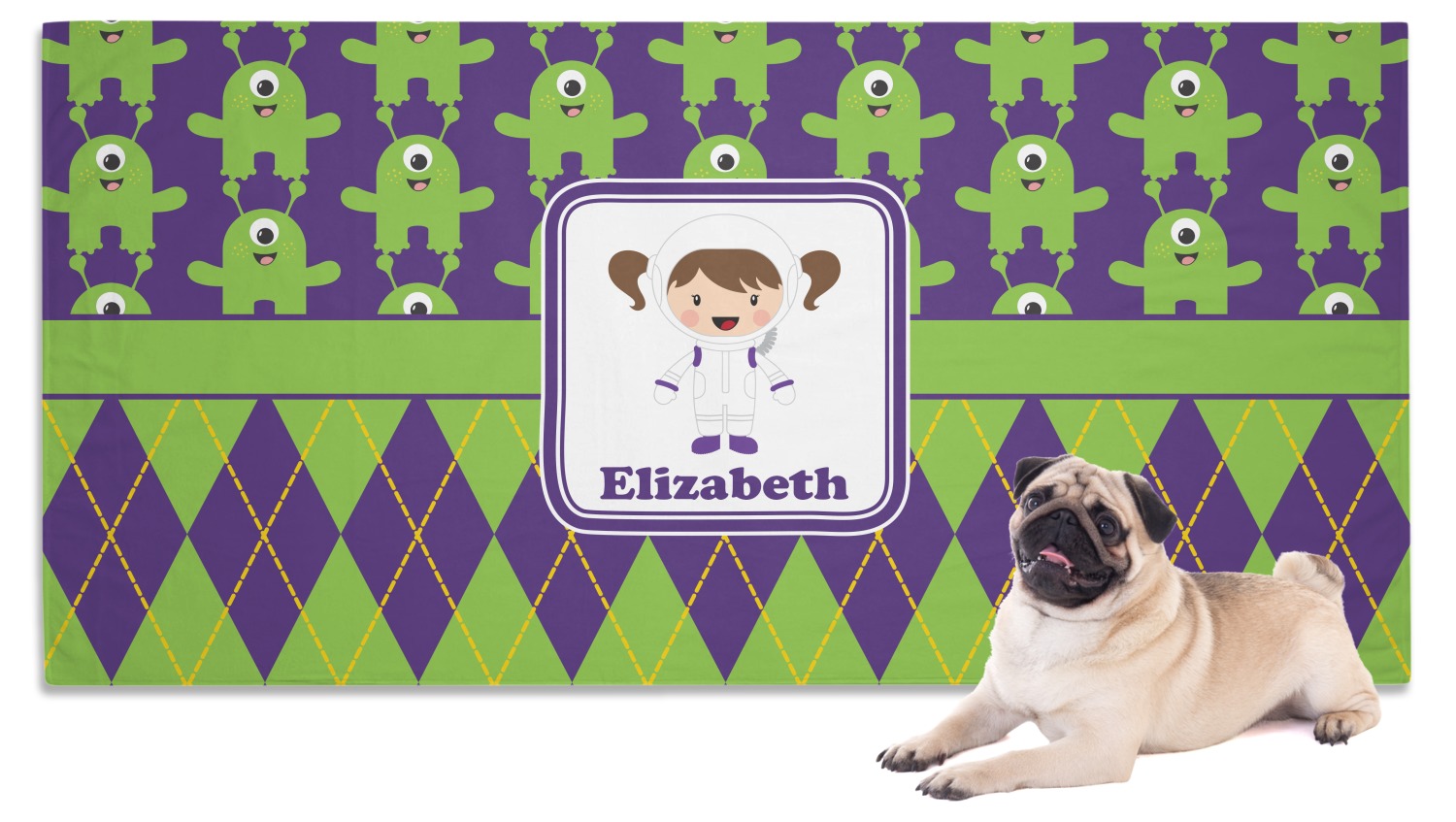 Our custom towels are crafted from a special blend of polyester and polyamide, which contributes to its lightweight, yet thoroughly absorbent nature. We craft it as such to guarantee efficiency as a convenient product; its lightweight nature makes it easy to roll up and carry along, yet it is still able to dry off even the wettest, muddiest pet. It measures at 60" x 30" and is sizable enough to dry off even the largest of pets. With our towel's gentle, soft-to-the-touch material, your pet will be sure to anticipate its warm, dry embrace. We print your personalized design on the front of the towel, while the back is white.