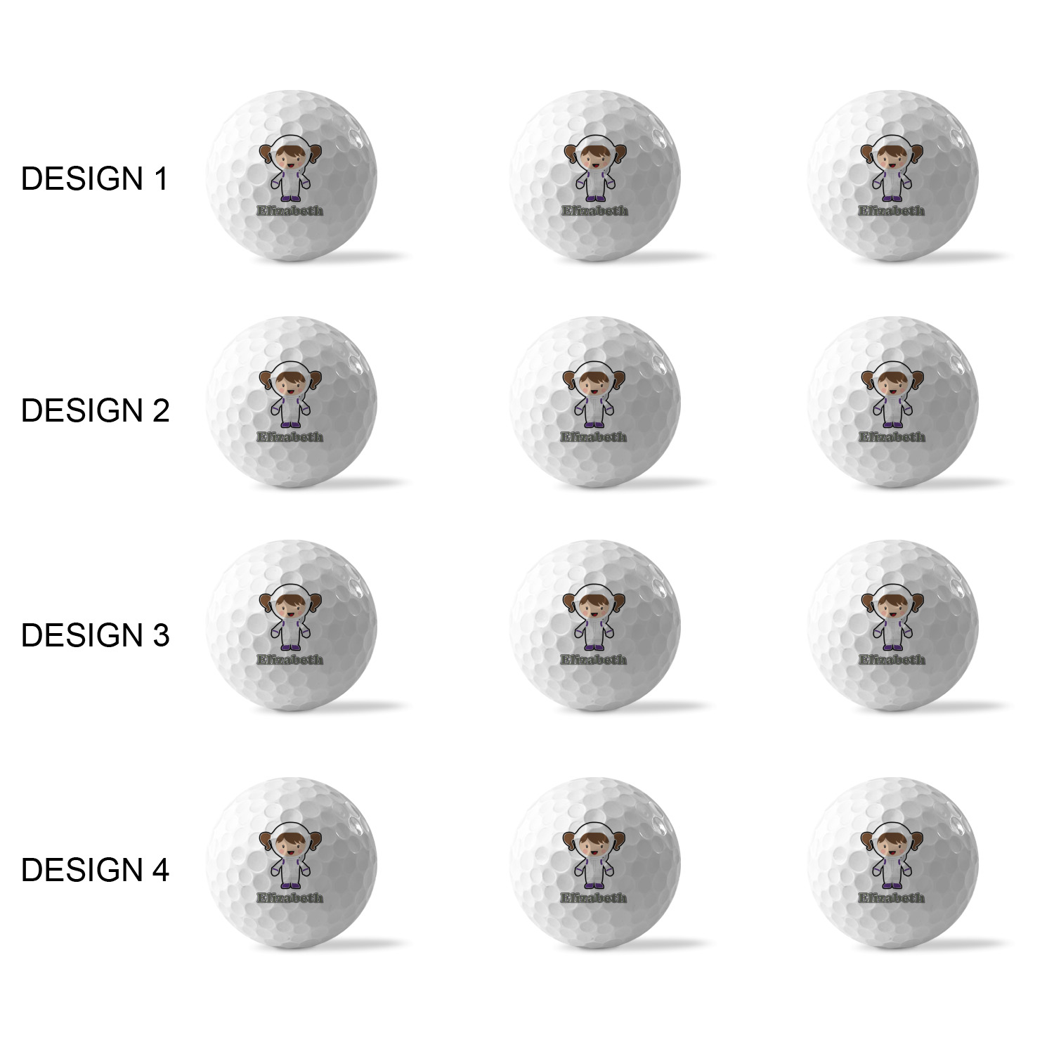 Printed in a 7/8" circle on each ball, you can customize these with our design studio or use your own designs. For a set of 3 you can design each one individually, for a set of 12 you will be able to use 4 unique designs and will receive 3 balls with each design.
