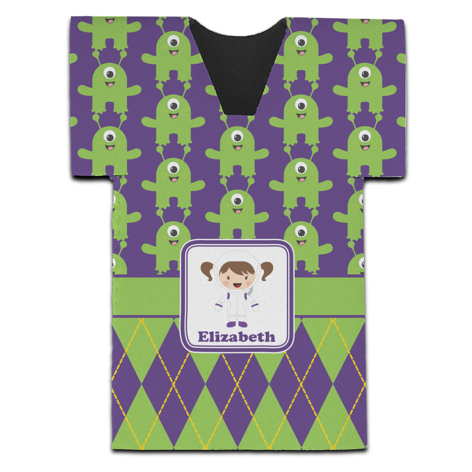 Not all martians have to be scary. These adorable green, one eyed martians will make any little girl a space fan. These little green martians come to life up against these beautiful purple background. The bottom of the design is a timeless green and purple argyle pattern with yellow accents. A green band with a purple trim brings both patterns together.