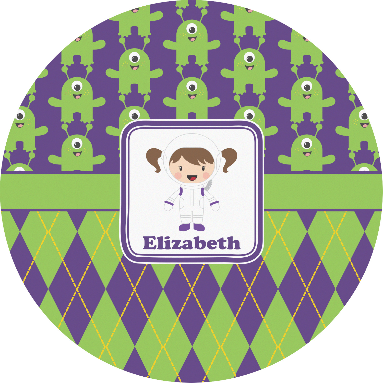 Not all martians have to be scary. These adorable green, one eyed martians will make any little girl a space fan. These little green martians come to life up against these beautiful purple background. The bottom of the design is a timeless green and purple argyle pattern with yellow accents. A green band with a purple trim brings both patterns together.