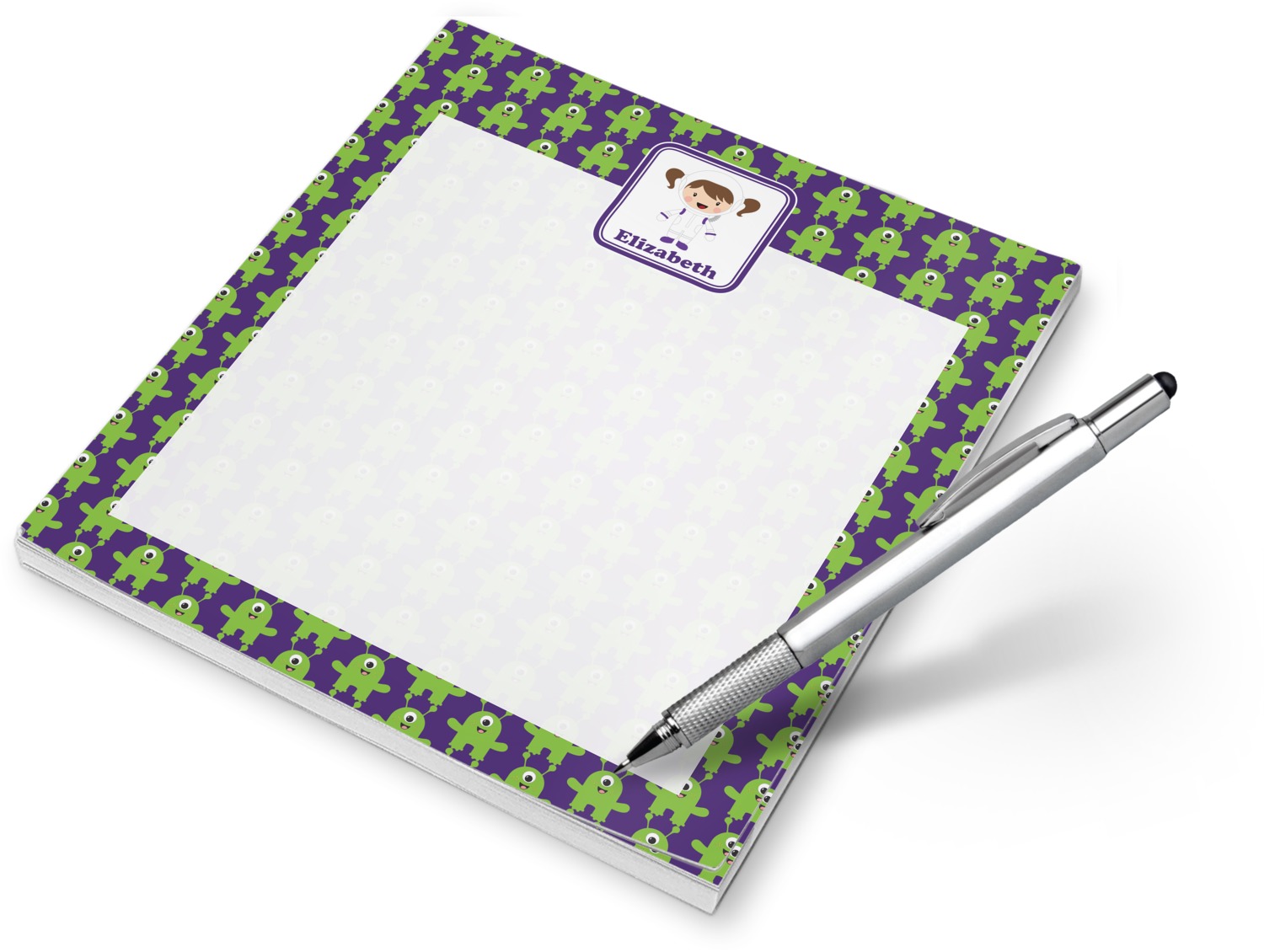 Your custom notepad features 50 sheets of thick, white paper, with your customization in the background and the edges. At approximately 6" x 5.5", these personalized memo pads are slightly larger than your average notepad. The individual notes tear easily from binding, which allows for quick, convenient, note-taking.