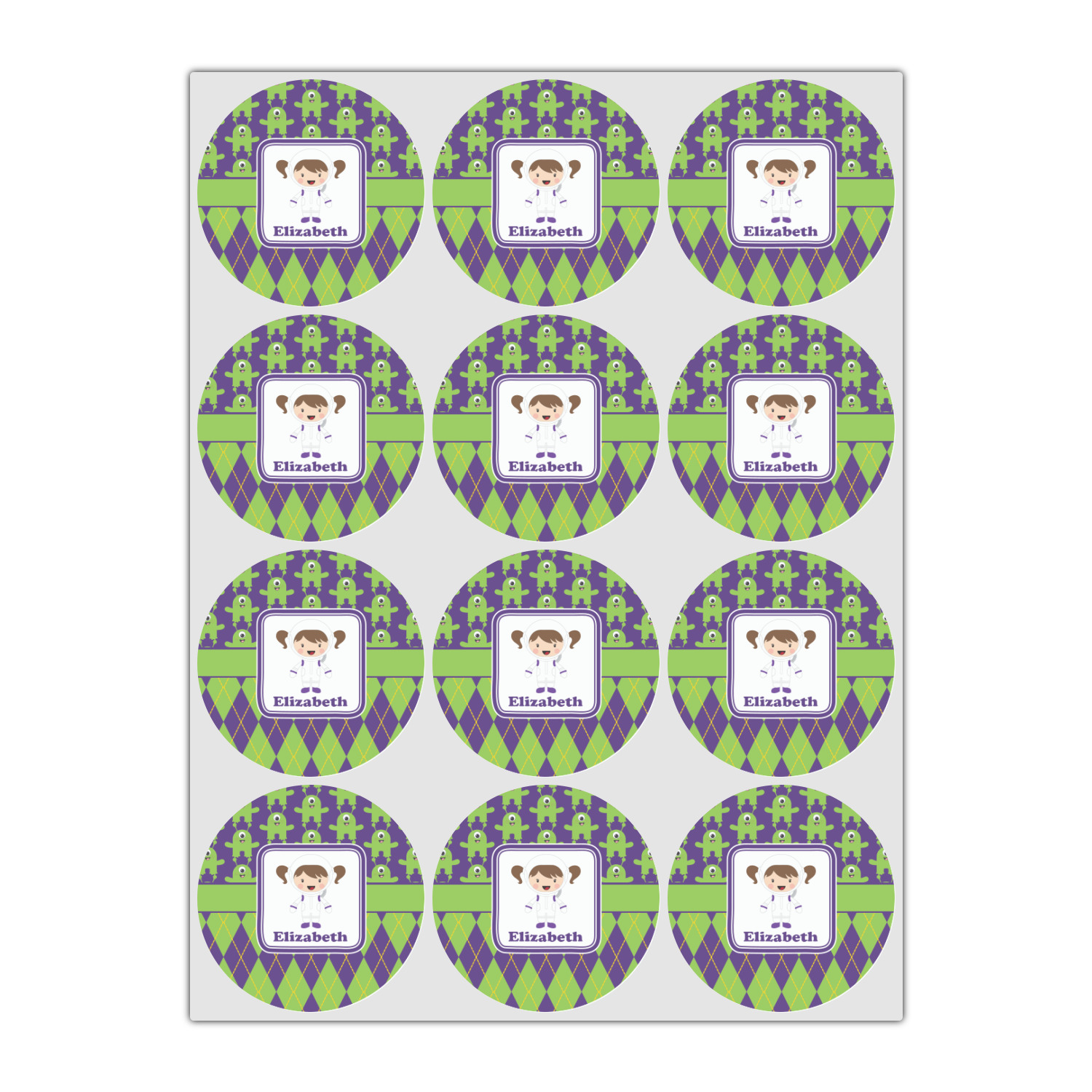 The center focal point of the design is a white square label outlined in the coordinating green and purple colors with our cute little girl in the middle. Add your little girl's name to make this design extra special.