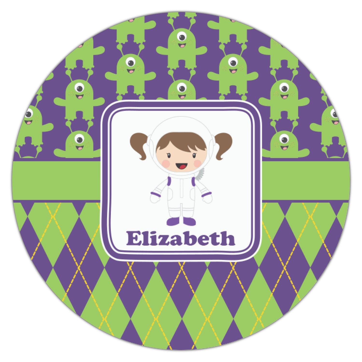 Not all martians have to be scary. These adorable green, one eyed martians will make any little girl a space fan. These little green martians come to life up against these beautiful purple background. The bottom of the design is a timeless green and purple argyle pattern with yellow accents. A green band with a purple trim brings both patterns together.