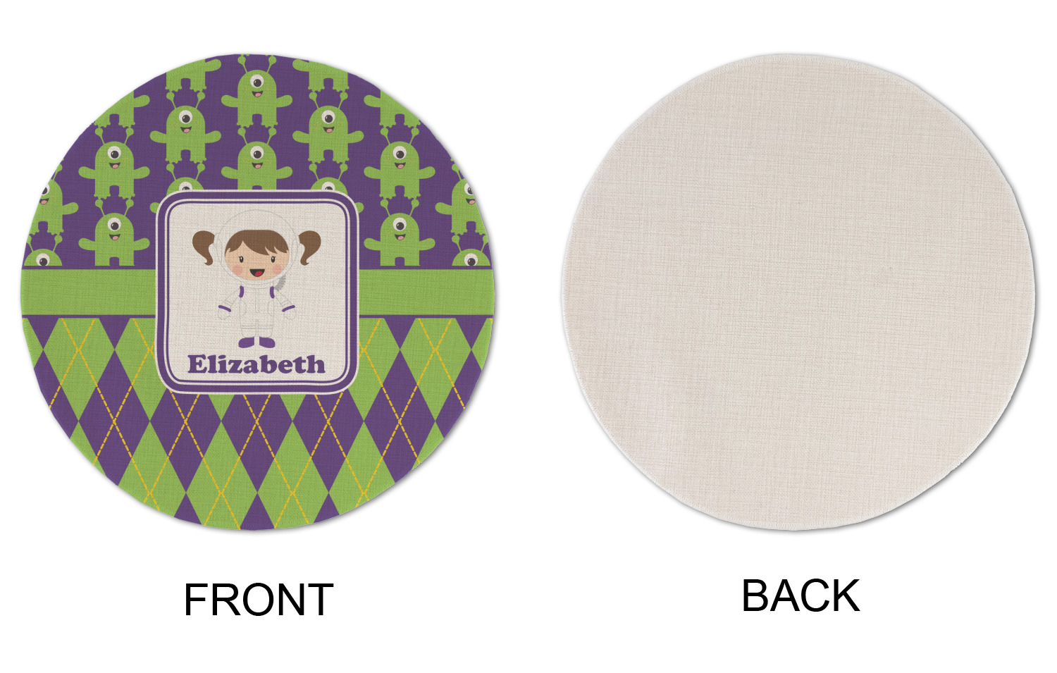 Not all martians have to be scary. These adorable green, one eyed martians will make any little girl a space fan. These little green martians come to life up against these beautiful purple background. The bottom of the design is a timeless green and purple argyle pattern with yellow accents. A green band with a purple trim brings both patterns together.