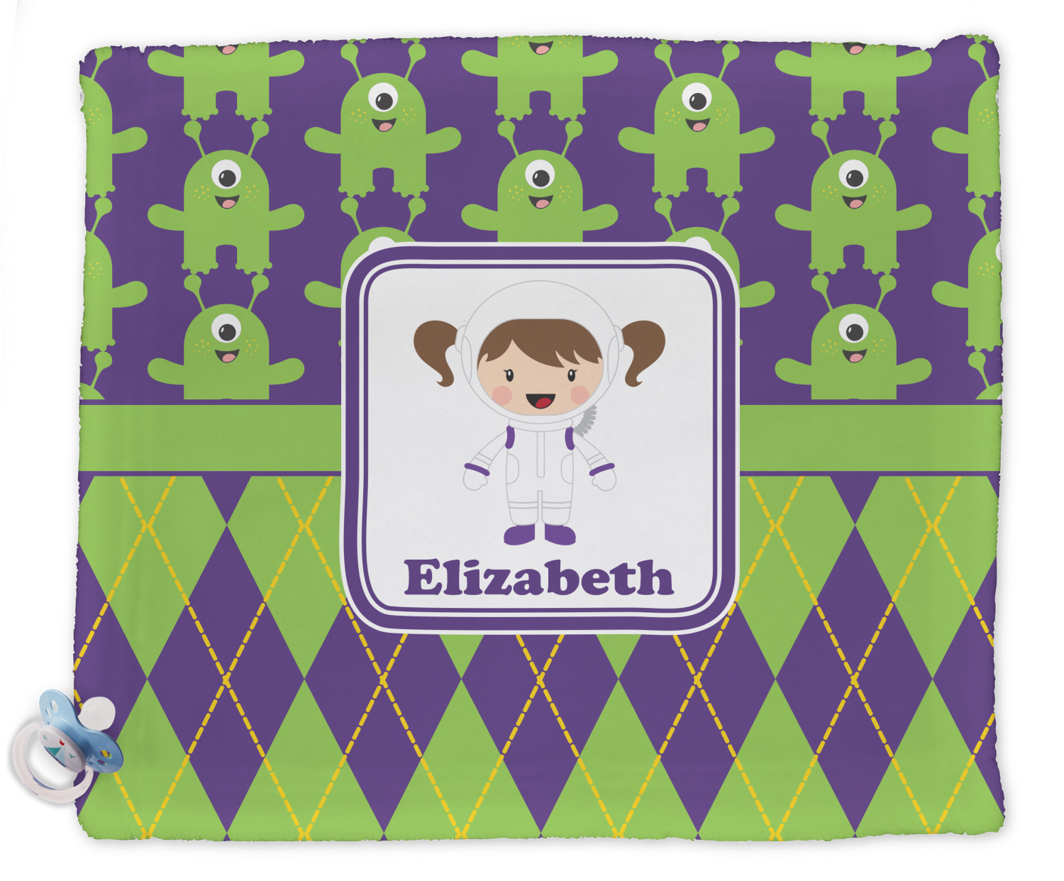 Crafted from an ultra soft fleece, these lovey blankets are the perfect, portable size to follow your child on any of his or her adventures. The plush texture also makes them ideal for naptime. Each personalized baby blanket measures at approximately 12 by 11 inches.