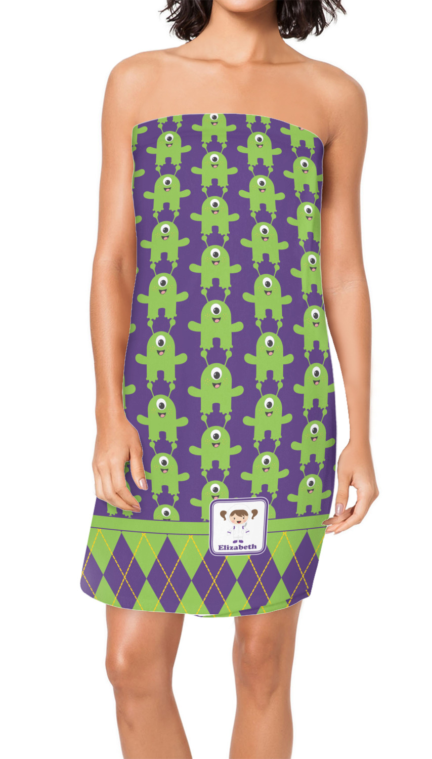 Made from a plush, fleece fabric, these luxurious towel wraps are comfortable and absorbent. They are printed, cut, and sewn for you, right here in the USA, after you place your order. These personalized bath wraps measure at approximately 59 by 32 inches, and display your customization across the outside.
