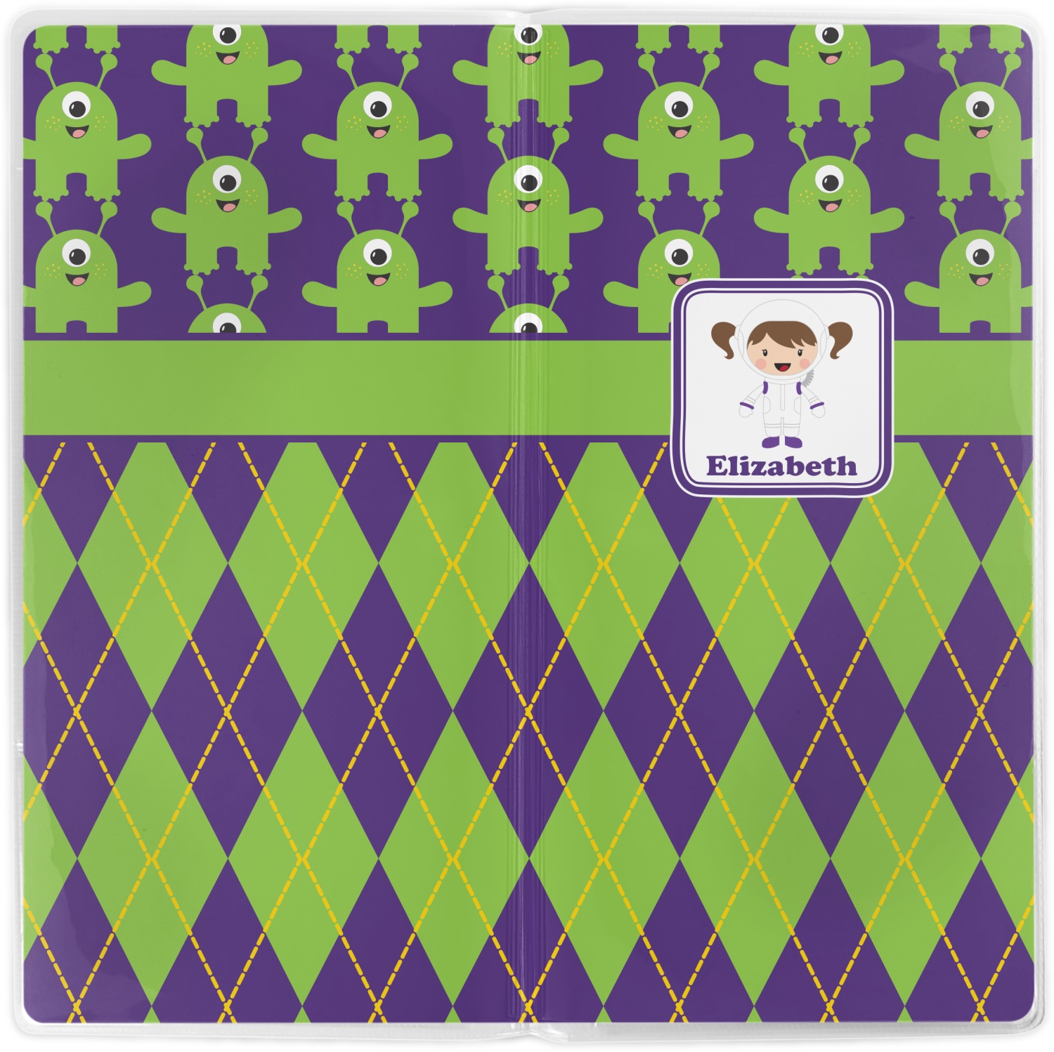 Not all martians have to be scary. These adorable green, one eyed martians will make any little girl a space fan. These little green martians come to life up against these beautiful purple background. The bottom of the design is a timeless green and purple argyle pattern with yellow accents. A green band with a purple trim brings both patterns together.