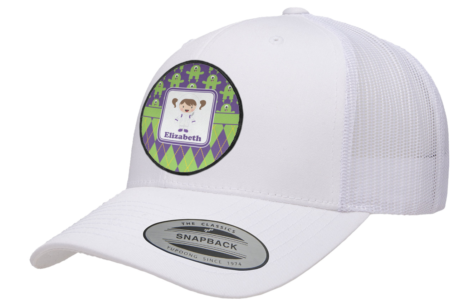 Not all martians have to be scary. These adorable green, one eyed martians will make any little girl a space fan. These little green martians come to life up against these beautiful purple background. The bottom of the design is a timeless green and purple argyle pattern with yellow accents. A green band with a purple trim brings both patterns together.
