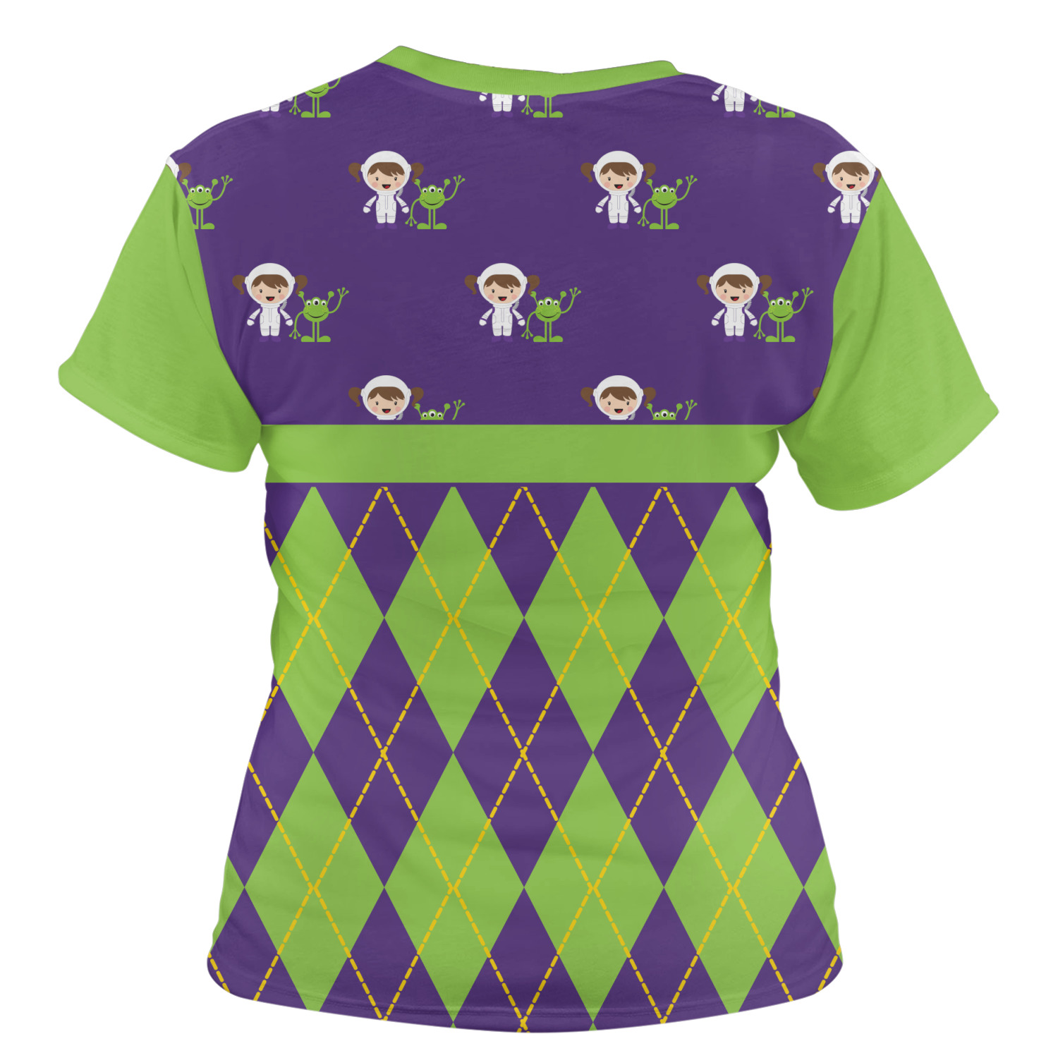 Our womens t-shirts are a lovely jersey knit polyester. They come in 6 different sizes ranging from X-Small to XX-Large. These shirts are your basic comfy crew neck t-shirts that look good on anyone. You are able to personalize the sleeves, front, AND back! Isn't that awesome?! Make everything one color or all different. The choice is yours.