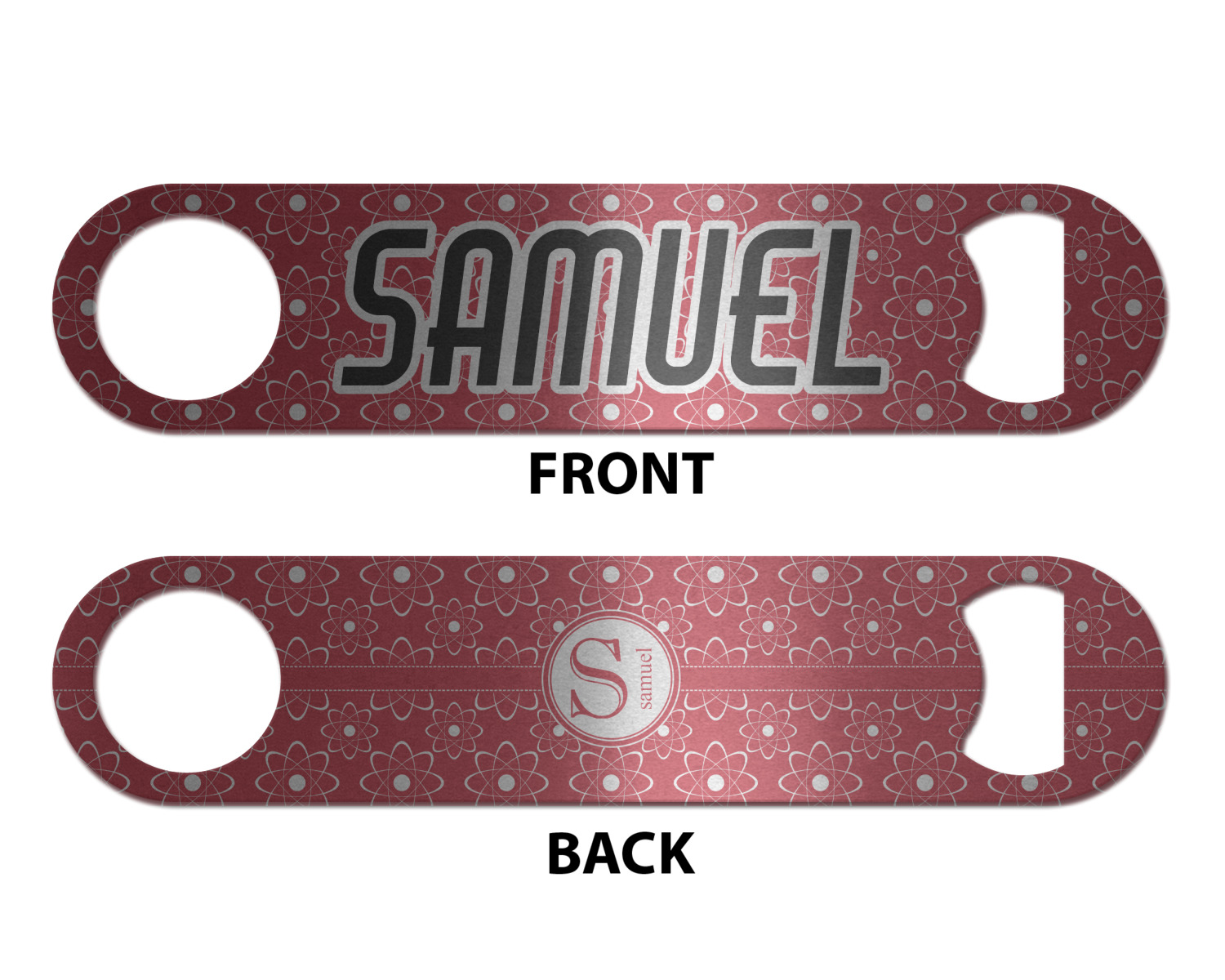 Stop struggling with the caps or your bottled beverages by purchasing one of our personalized bottle openers! These wrench-like custom bar blades are built to last. Customize one for your home's bar, or as a practical gift for a loved one!