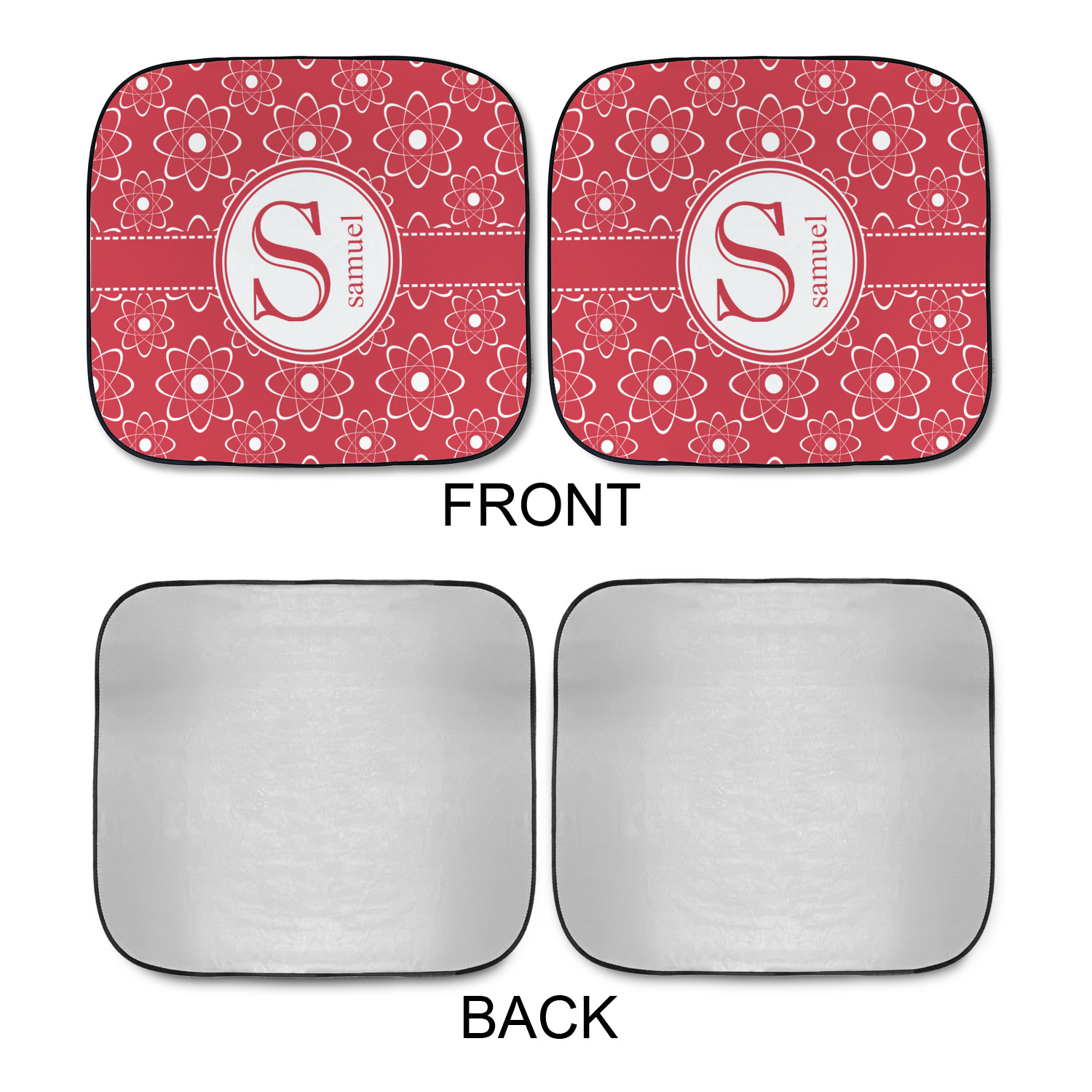 Sold as a pair and with your design printed on the front and the back having a reflective silver material these are sure to reduce the temperature of the inside of your car and keep UV rays from prematurely wearing your dash and interior panels. You have the option of both being the same design or design them separately for a unique look that will have all of your friends asking where you got your car windshield sun shades.
