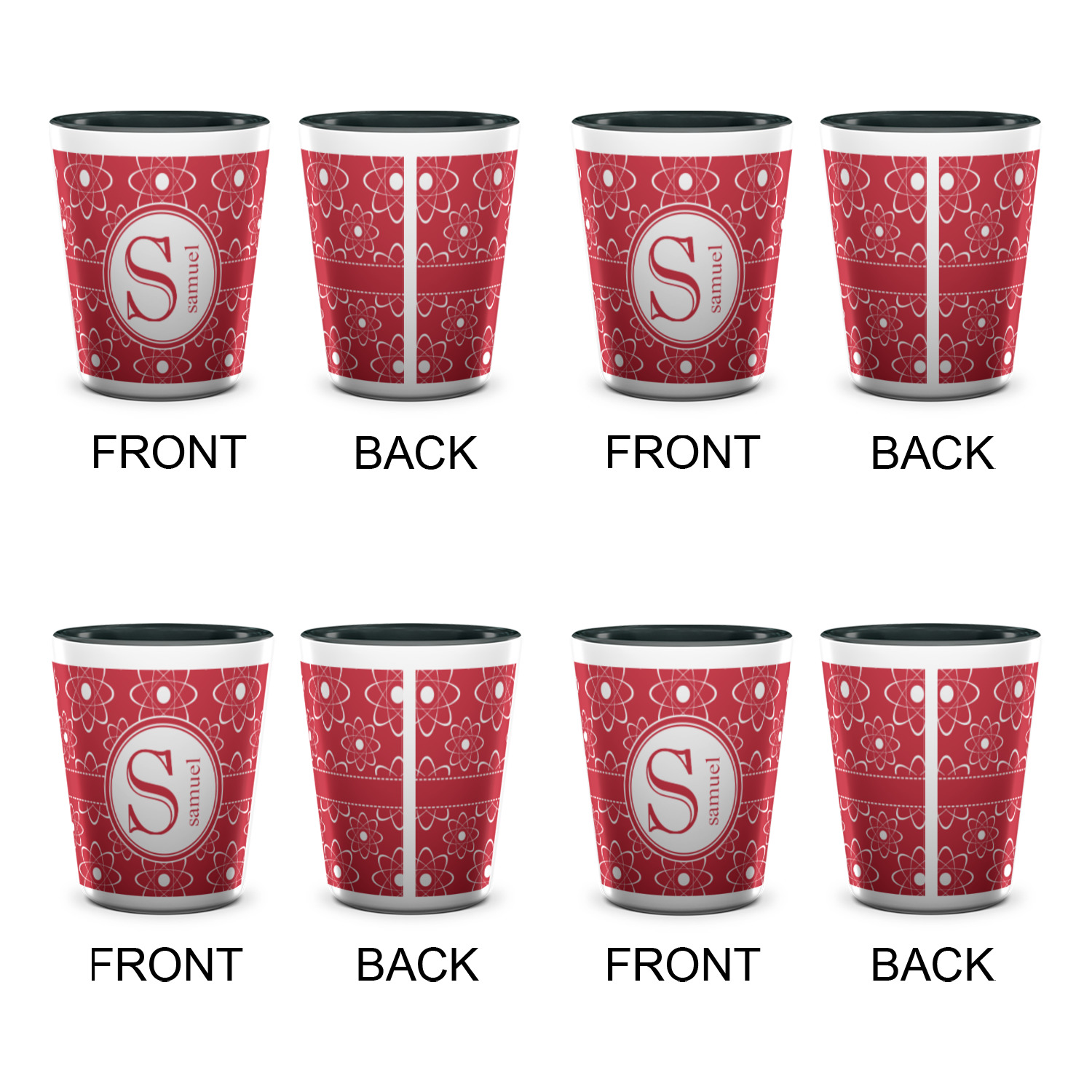 Made from ceramic these shot glasses are printed in full color with the design of your choice. These are a standard 1.5oz size and stand 2.25" tall. Available in a full white ceramic or a two-tone with a black color inside the shot glass. Buy a single or a set of 4, all of which can be designed separately to get you just what you want and need.