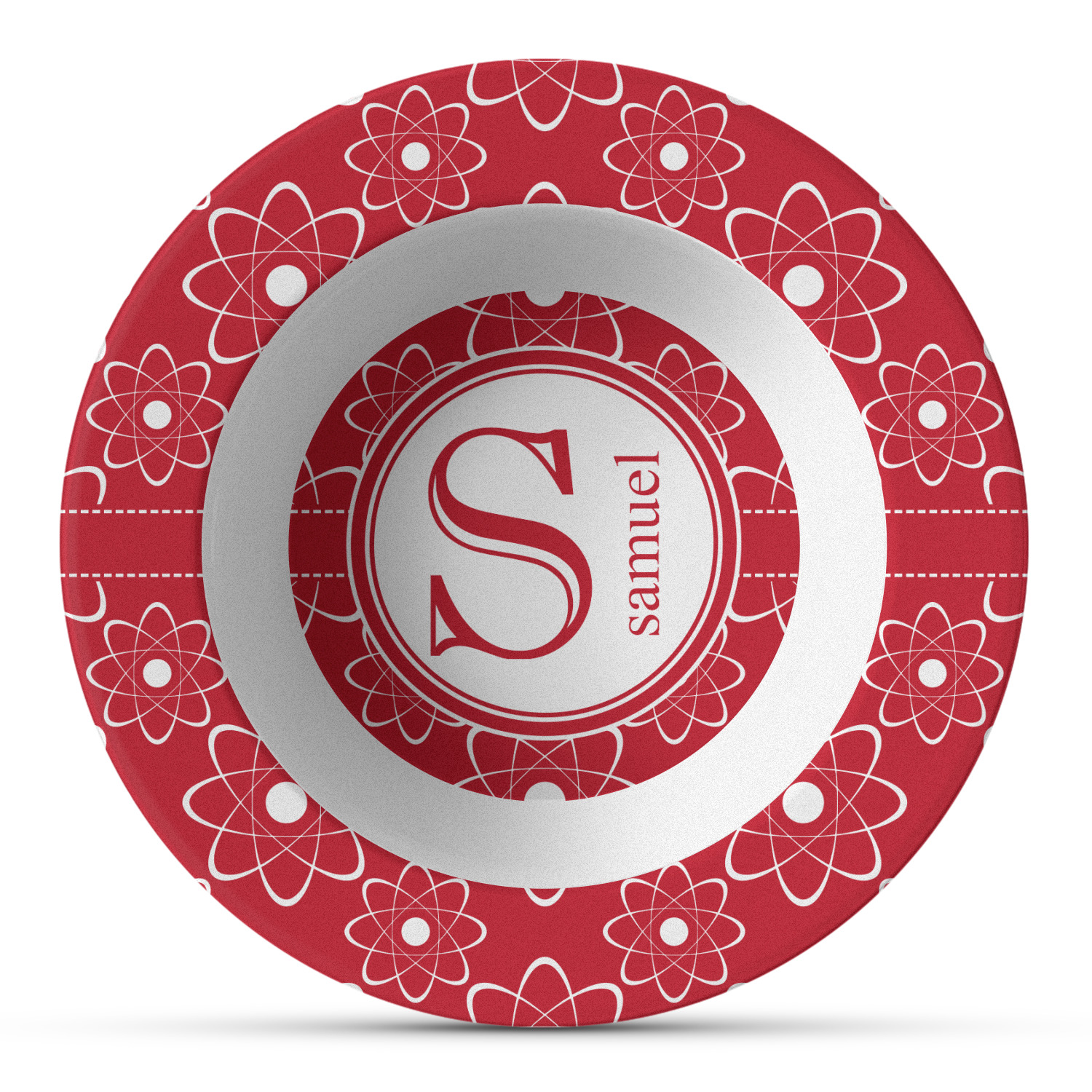 Made from a composite, thermo-set, polymer plastic, these dinner bowls have the versatility, durability, and weight of a melamine bowl without any of the downsides of melamine. Unlike melamine dinnerware, these bowls can withstand high heat. These custom plastic bowls can even handle temperatures of up to 250 degrees Fahrenheit, for up to 60 minutes. The pieces of our plastic dinner set are never made with harmful chemicals, such as BPAs, formaldehyde, DEHPs. We display your personalization on the base of this bowl's interior, while the bowl itself has an 8.75" diameter and is 1.75" tall.