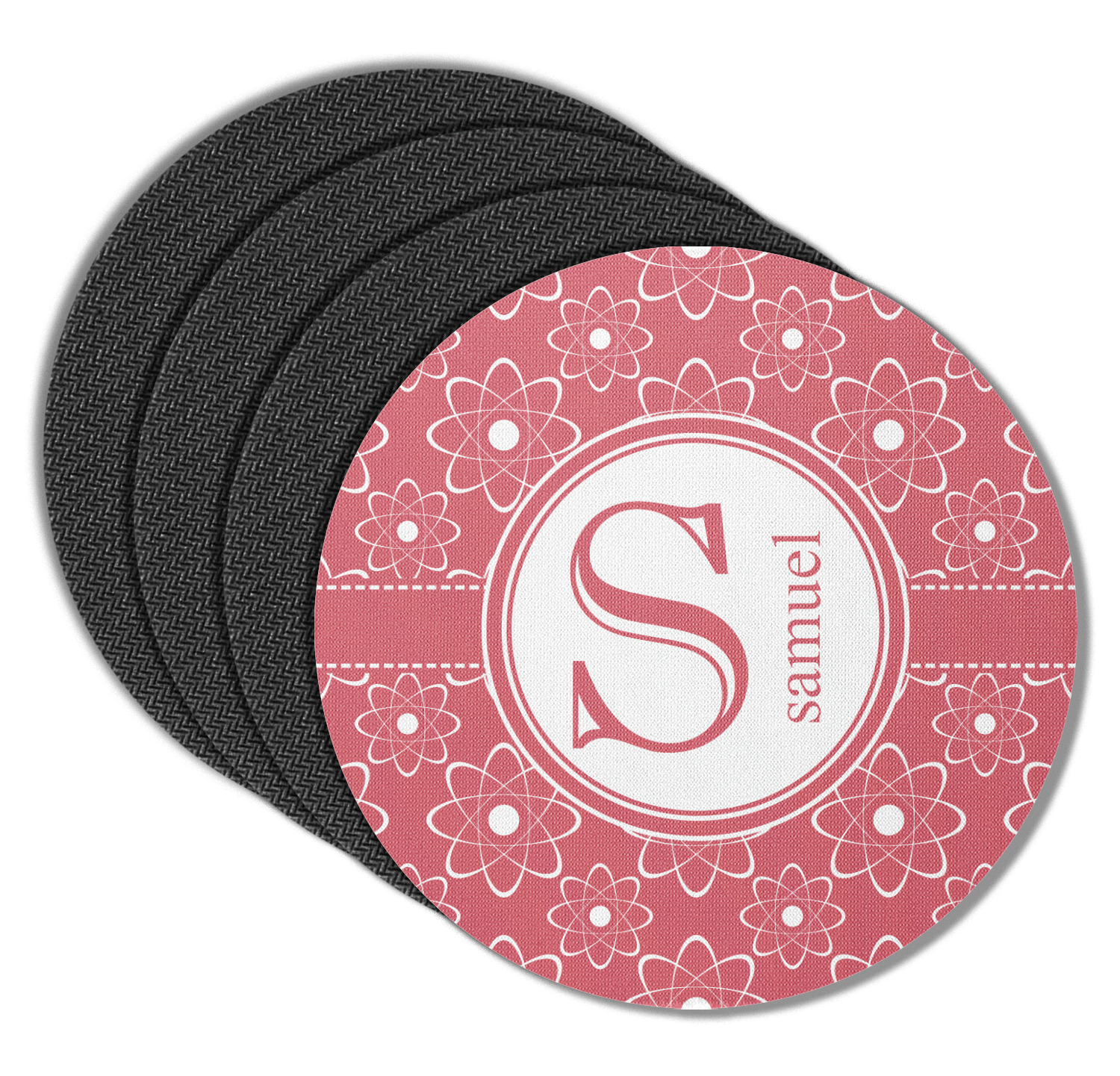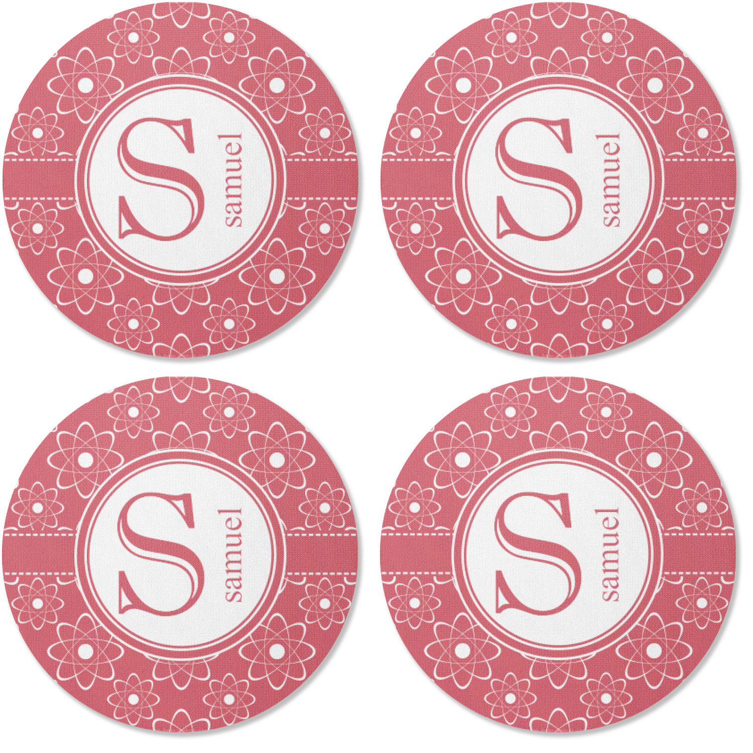 These drink coasters have a smooth, polyester top and a textured, rubber backing on its bottom. The non-slip rubber backing underneath works to keep any spills at bay. At 4 by 4 by 0.25 inches thick, these custom coasters are a suitable size for most drinkware. Your personalization is displayed atop the face of the cup coaster. We sell these rubber coasters in two different shapes: square and round. You can buy each shape as singulars or as a set of 4.