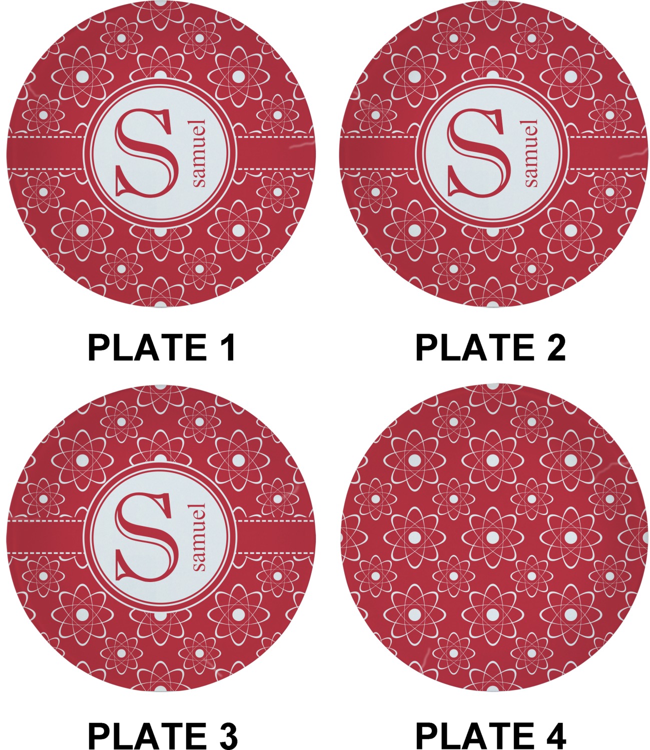 With a of designs and patterns, these plates are completely customizable. Choose a foodie design, complete with red-hot chili peppers, or go classic with stripes or plaid. Include your monogram or family name to make sure these plates never get lost at parties!