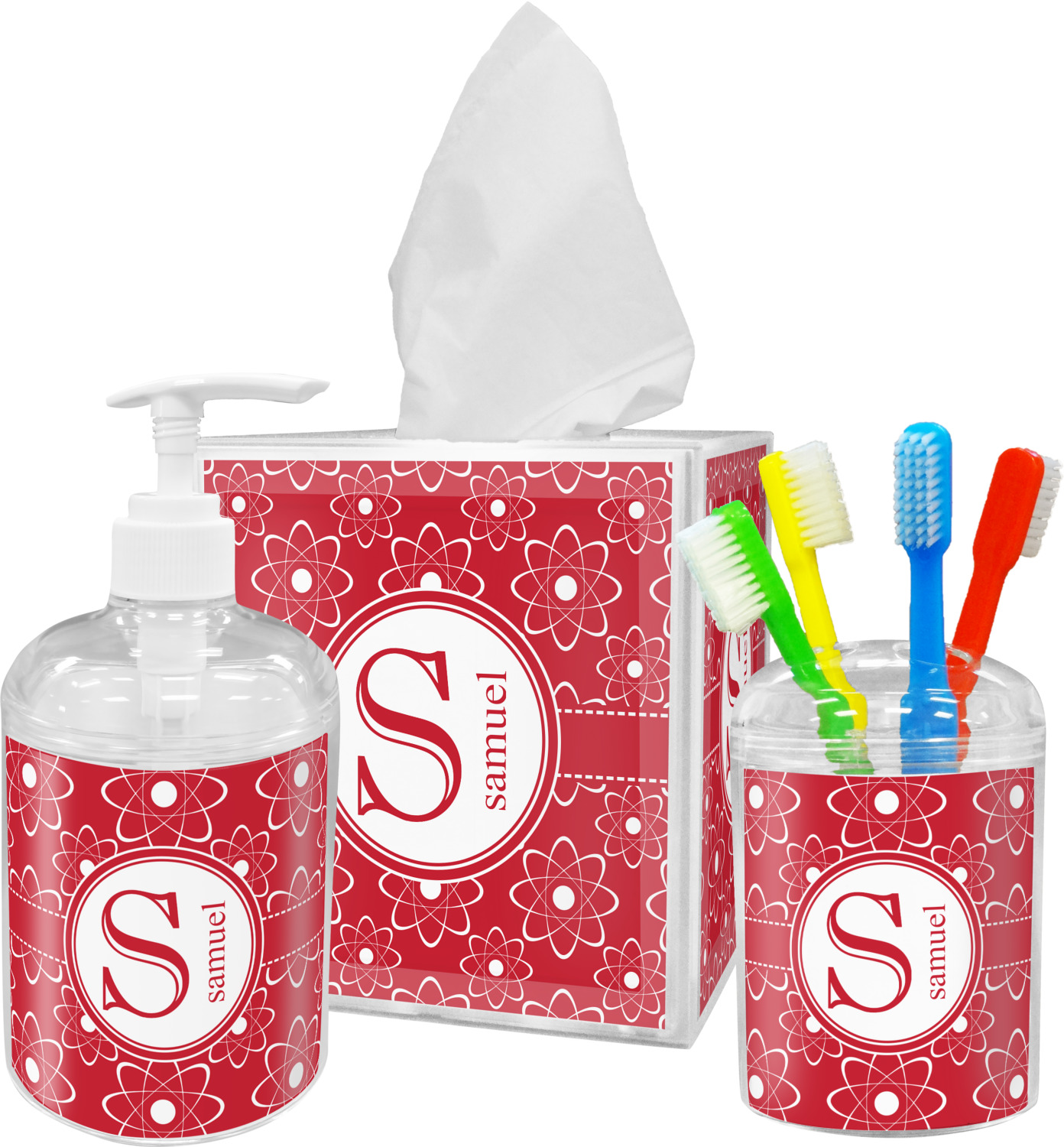 Another design for our nerds out there! This design highlights the structure of the atom, the building block of life, in bold red and white.