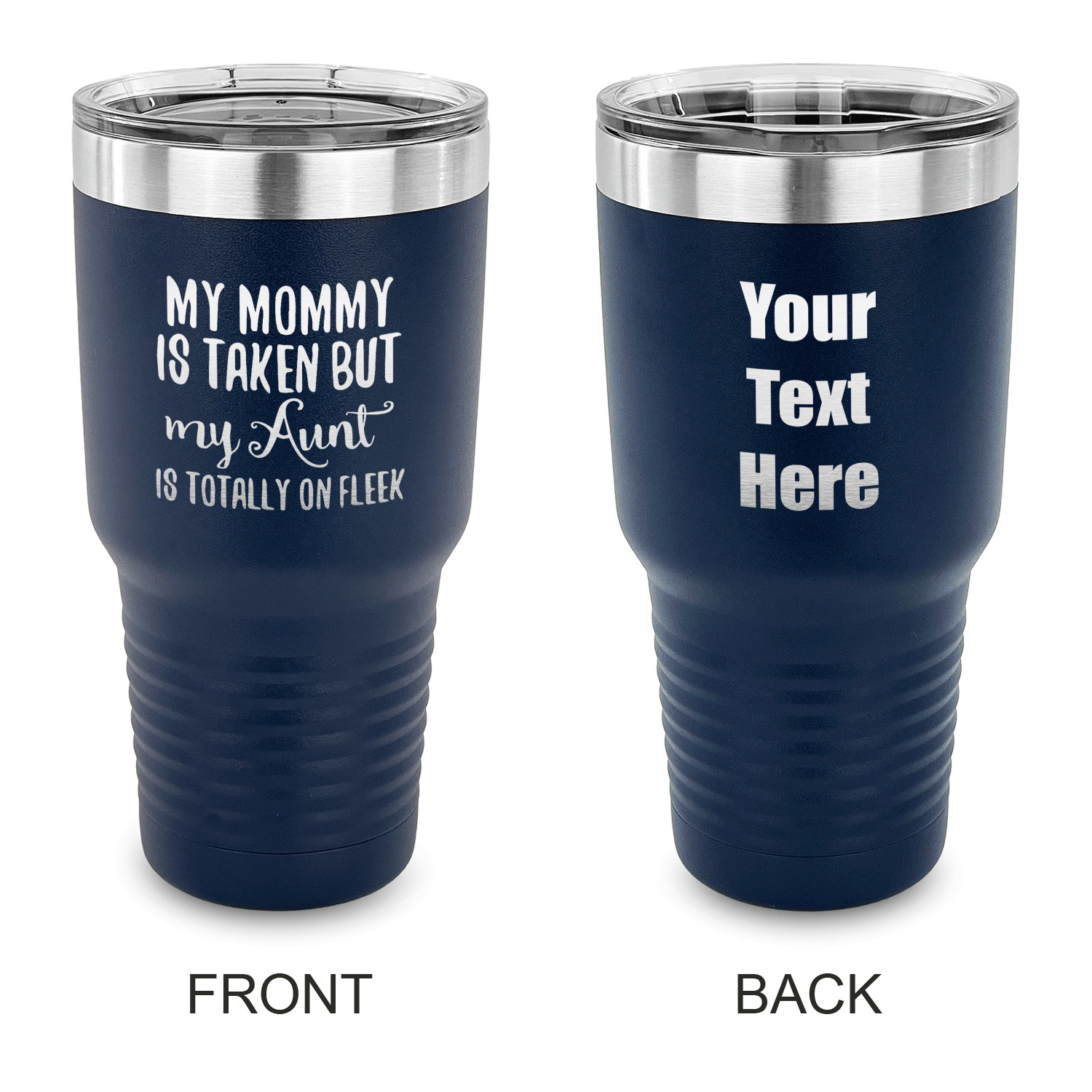 With the 5 colors - Black, Navy, Red, Pink and Coral, you are sure to find a cup to fit your personality. You can chose to engrave on the front or the front and back of the cup. Use our design studio to design your own cup and we laser engrave it for you.