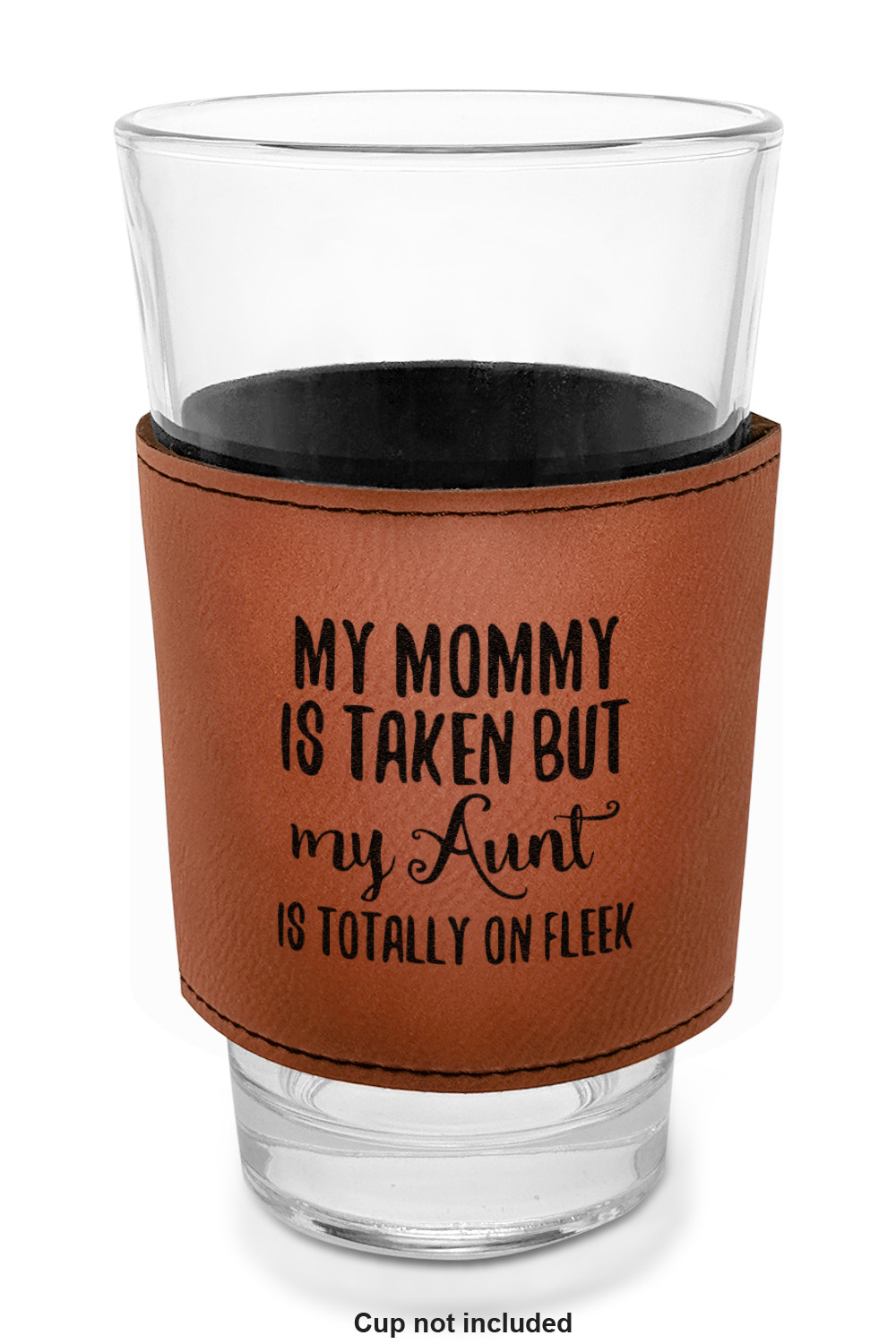 This cup sleeve is made from a suave, cognac-brown leatherette and finished with an intricate, black stitch. The interior of this can sleeve is fabricated from a thin foam material to help insulate your mug's contents. The sleeve is specifically made to suit tapered glasses or mugs, so the top's diameter is 3.5 inches, while the bottom's diameter is 2.75 inches. Your customized design will be laser engraved into the leatherette, leaving behind crisp, black imprint. With these products, we provide you with the option of engraving the front and back, or the front only.